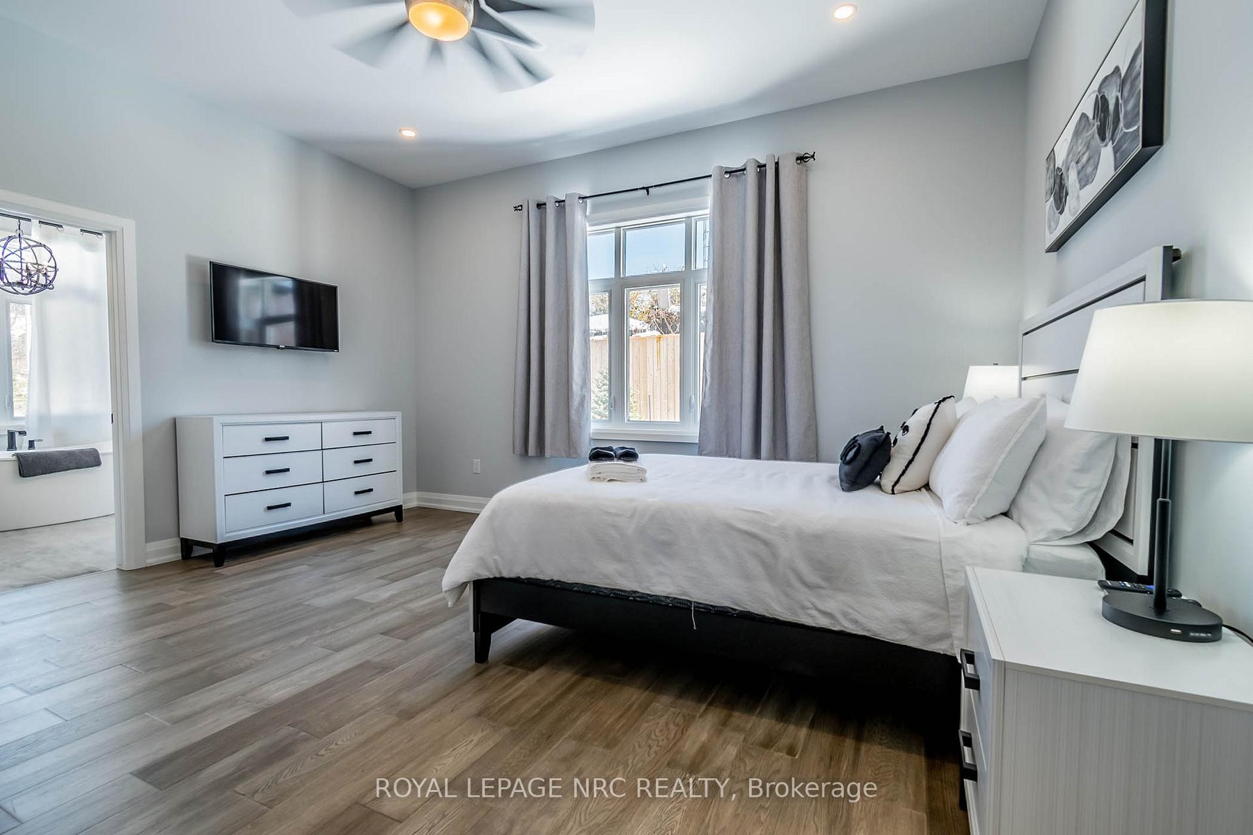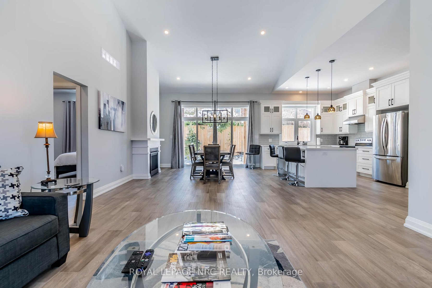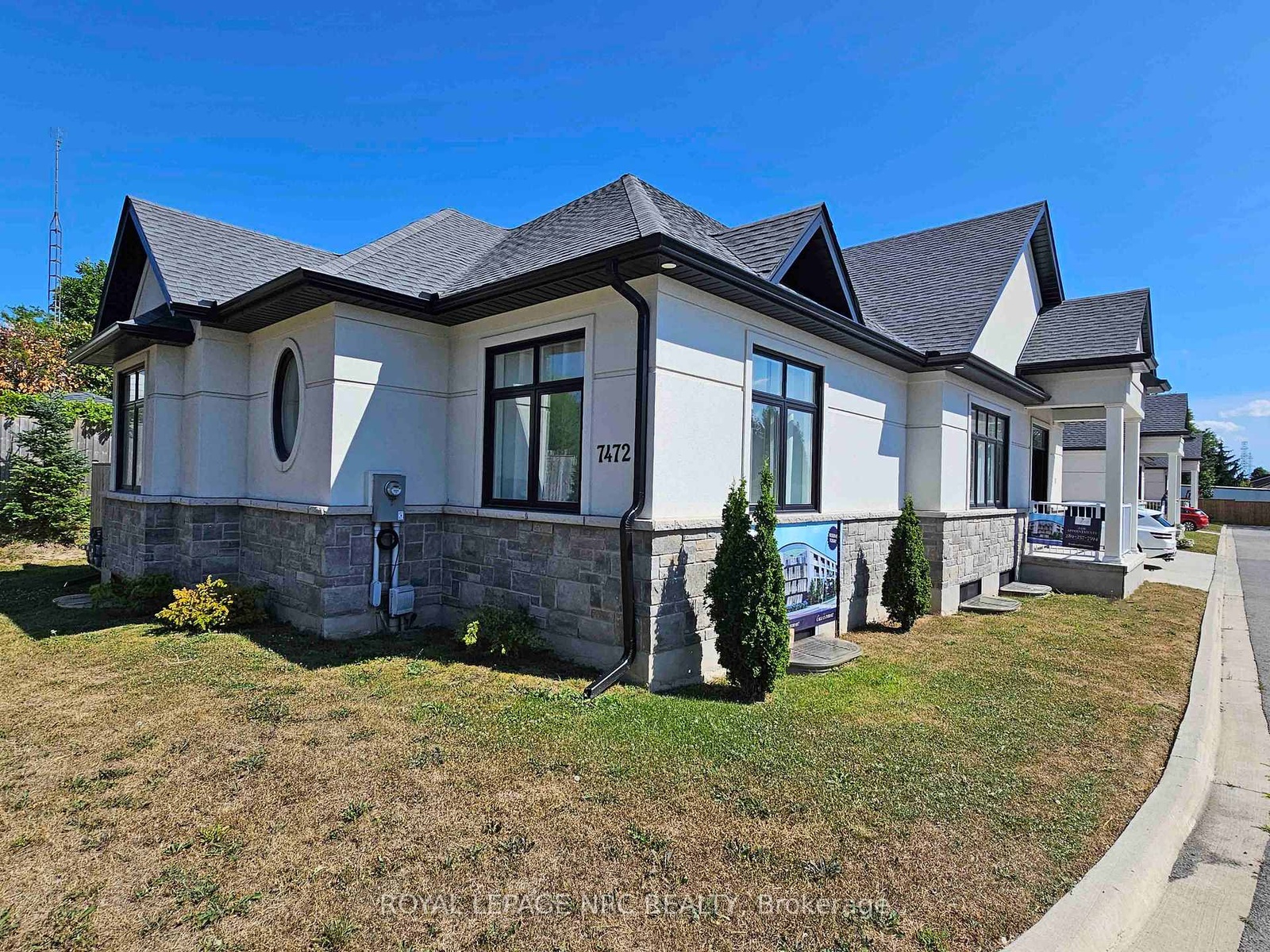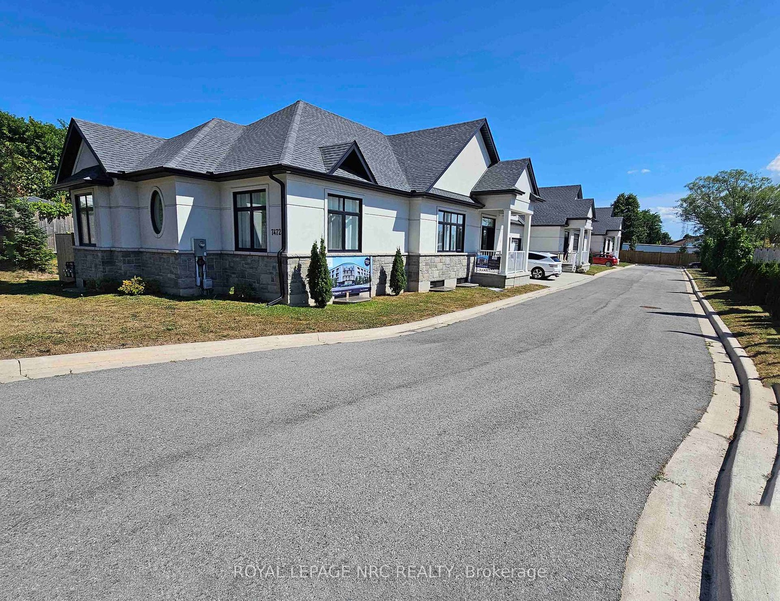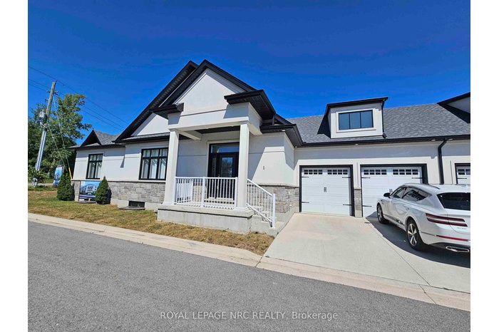 Massive size bungalow (over 1700sf main floor plan)! A very rare find is its 2 basement AND 2 garage access! Yes! The basement has its own separate entrance AND garage access (view/click on media/Video Tour to see the lay-out). Also 6 extra large basement windows with rough in for bathroom and kitchen. 200 amps. This is SO ideal for having a totally separate in-law suite AND still have half of the basement with your own bright and spacious extra living space! Fantastique luxurious curb appeal with its stucco and stone exterior finishes, double wide concrete driveway and 2-car garage. Open concept design, so many luxurious features: 10 flat ceilings with vaulted ceiling in the great and dining room, gorgeous white kitchen with crown molding and soft closing drawers, extra large island, quartz counter tops, trendy light fixtures, gorgeous dining chandelier, fireplace with mantel, transom windows throughout main level, wide plank flooring, ensuite double sink, large shower, soaking tub, walk-in closet. Main level laundry room. Covered patio. 200-amp electrical service, insulated basement, central vac rough in. NO rentals; furnace, central air and superior quality water heater are owned. Situated in the prestigious North end of Niagara Falls on Mountain Road in an exclusive community of 3 Townhomes. Near Firemen's Park. Quick/easy access to QEW hwy. Just minutes from our famous Falls entertainment and shopping malls. Furniture negotiable for sale to Buyer. Condo fees include: Building Insurance, Building maintenance, Ground Maintenance/Landscaping, Snow Removal.