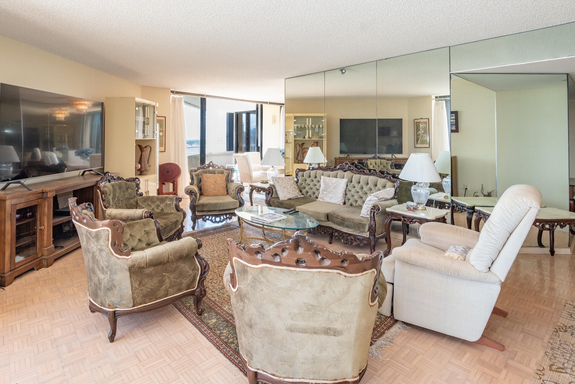 Gorgeous view from southeast 14th floor.  Parquet flooring, lovely antiques, and large rooms.  1823/2023 square feet with garage parking.  Amenities include 2 pools, 2 Jacuzzis, 900' of beachfront, tennis and pickleball. Fitness center facing the ocean.
