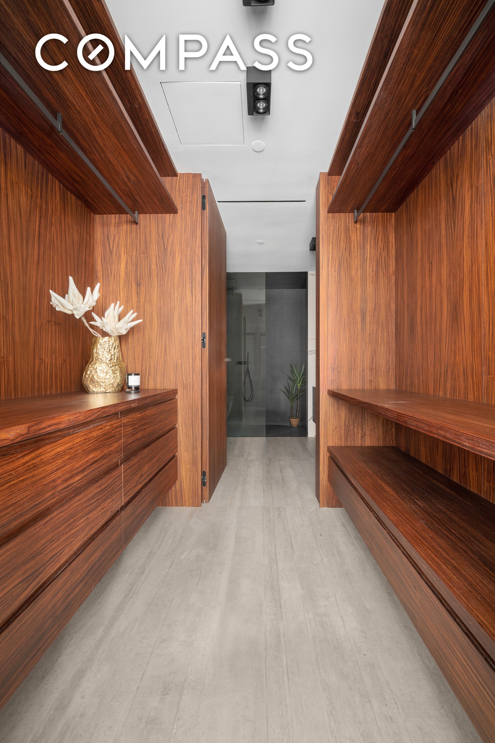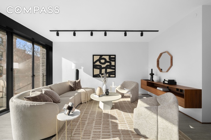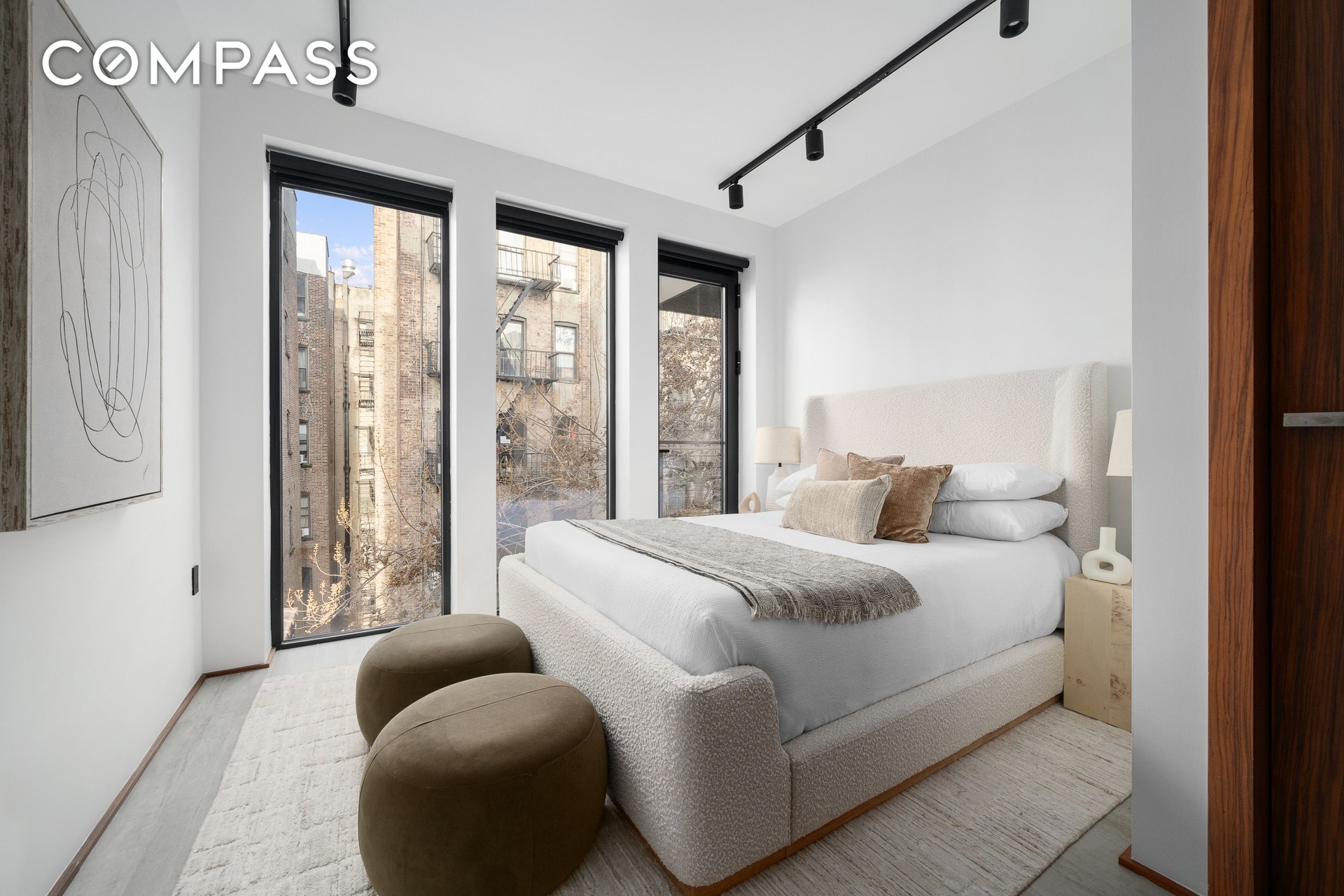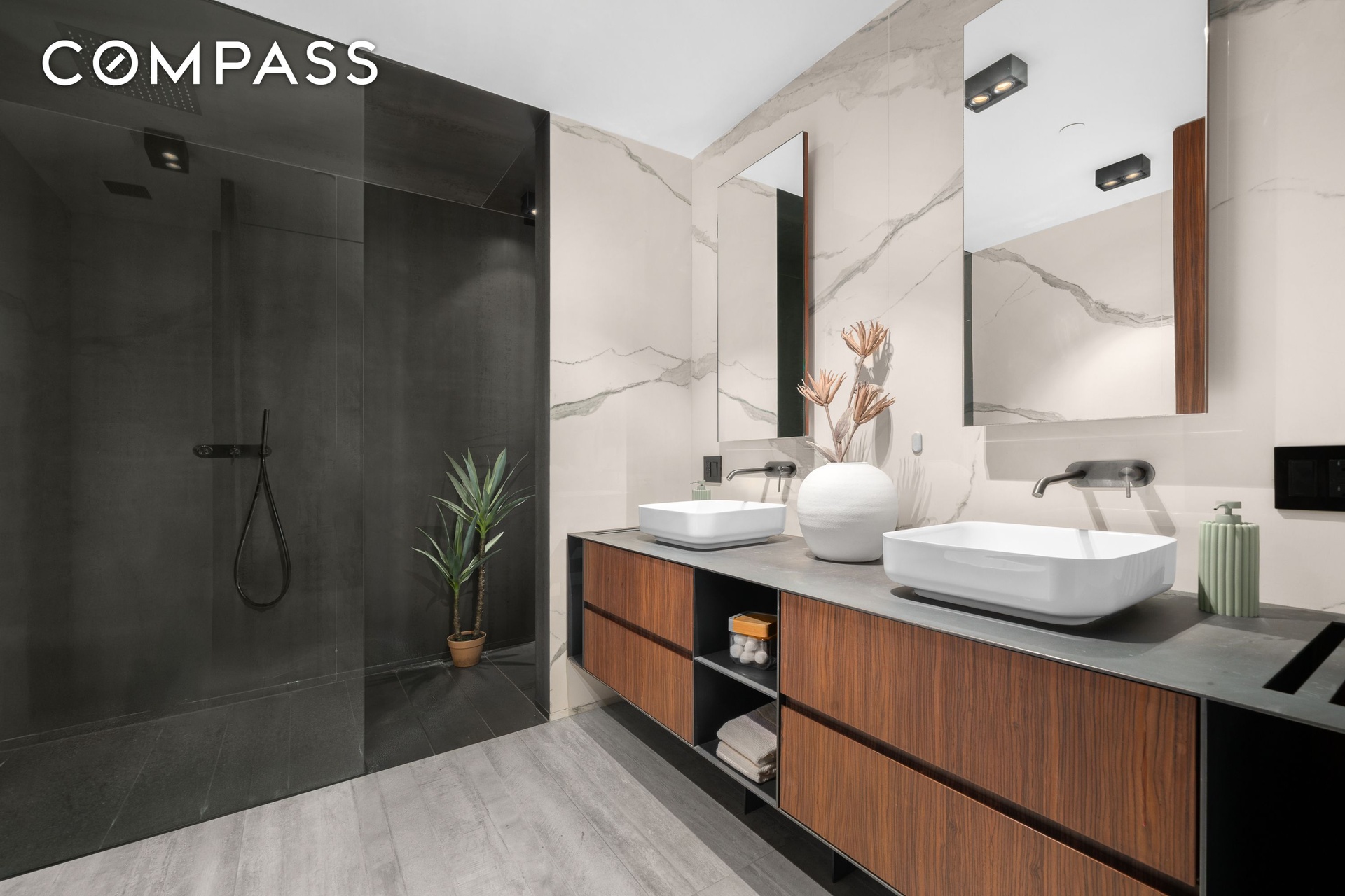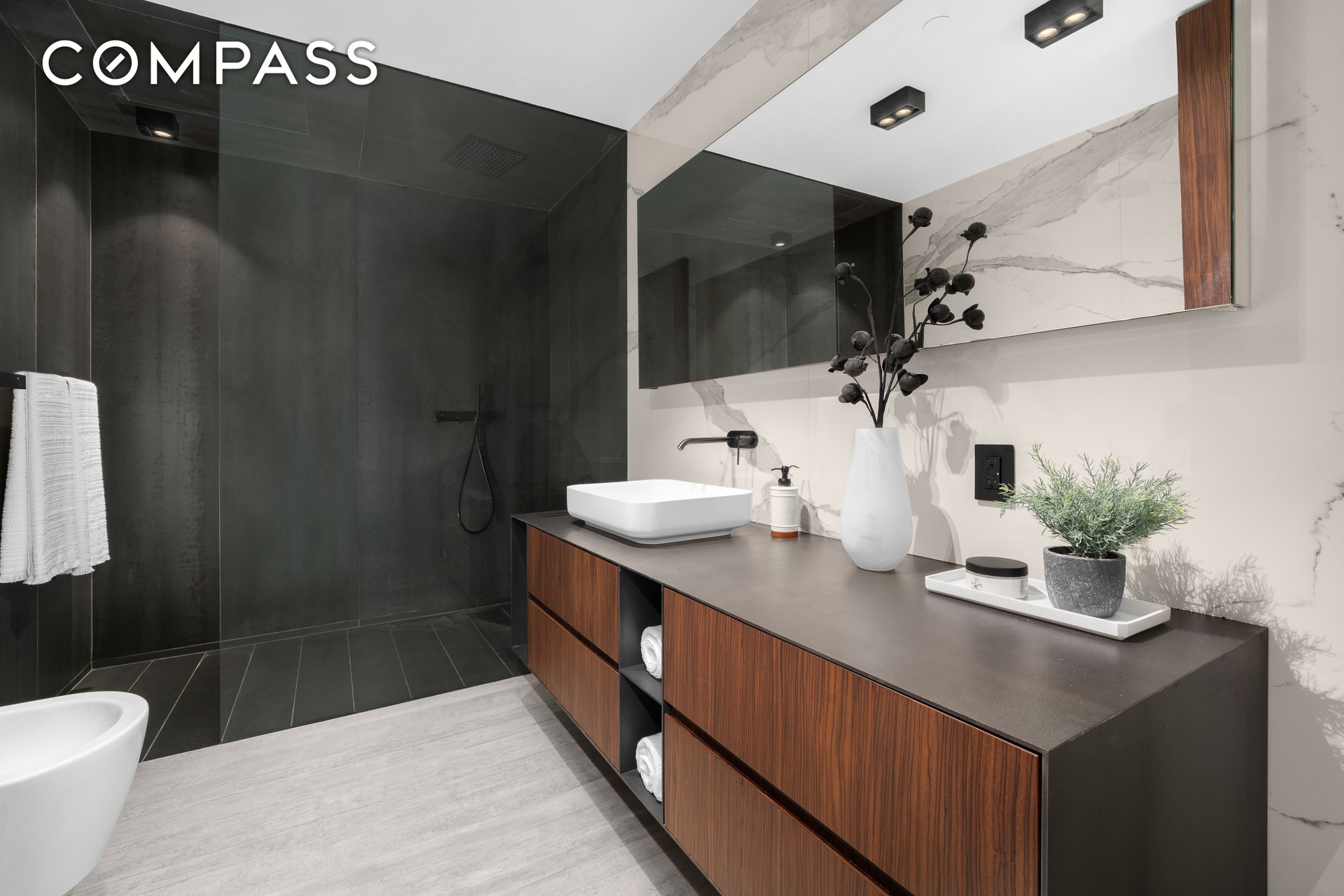 Modern Luxury Meets Natural Elegance at 619 East 6th Street, Residence 4 Welcome to Residence 4 at 619 East 6th Street, a bespoke 2-bedroom, 2-bathroom sanctuary located in La Botanica—an exclusive five-residence condominium designed by award-winning DXA Studio. Nestled in the heart of Manhattan’s vibrant East Village and directly across from a lush botanical garden, this 1,317-square-foot home blends refined craftsmanship with a biophilic design philosophy that brings the outdoors in. Step into a light-filled living space defined by a 23-foot-wide, steel-framed glass wall, two Juliet balconies, and northeastern and southwestern exposures that bathe the home in natural light throughout the day. The open-concept living, kitchen, and dining area is anchored by a sculptural rosewood island topped with minimalist Italian black ceramic and a suspended black table—equal parts art and utility. Sleek black Miele appliances, floor-to-ceiling rosewood cabinetry, and refined lighting elements complete this chef's dream kitchen. The primary suite is a serene retreat, featuring a wall of north-facing windows, private balcony, and a custom walk-in closet with built-in rosewood storage. The ensuite bathroom exudes luxury with marbled ceramic walls, a dual-sink rosewood vanity, Duravit bidet, and a dramatic lava-black walk-in shower. The second bedroom rivals the primary in size and light, also with a north-facing glass wall, Juliet balcony, and an expansive walk-in closet with built-ins. The second bath mirrors the high-end finishes of the primary, complete with ambient integrated LED lighting in the mirrors for a spa-like experience. For added convenience, the home includes a discreet in-unit washer and dryer, blending functionality with the thoughtful design that defines every inch of this remarkable residence. La Botanica at 619 E 6th St is more than just a home—it’s an immersive living experience. Just moments from Tompkins Square Park, eclectic dining, and boutique shopping, this modern oasis offers tranquility and sophistication in one of Manhattan’s most dynamic neighborhoods. Discover the essence of modern botanical living—schedule your private tour today.