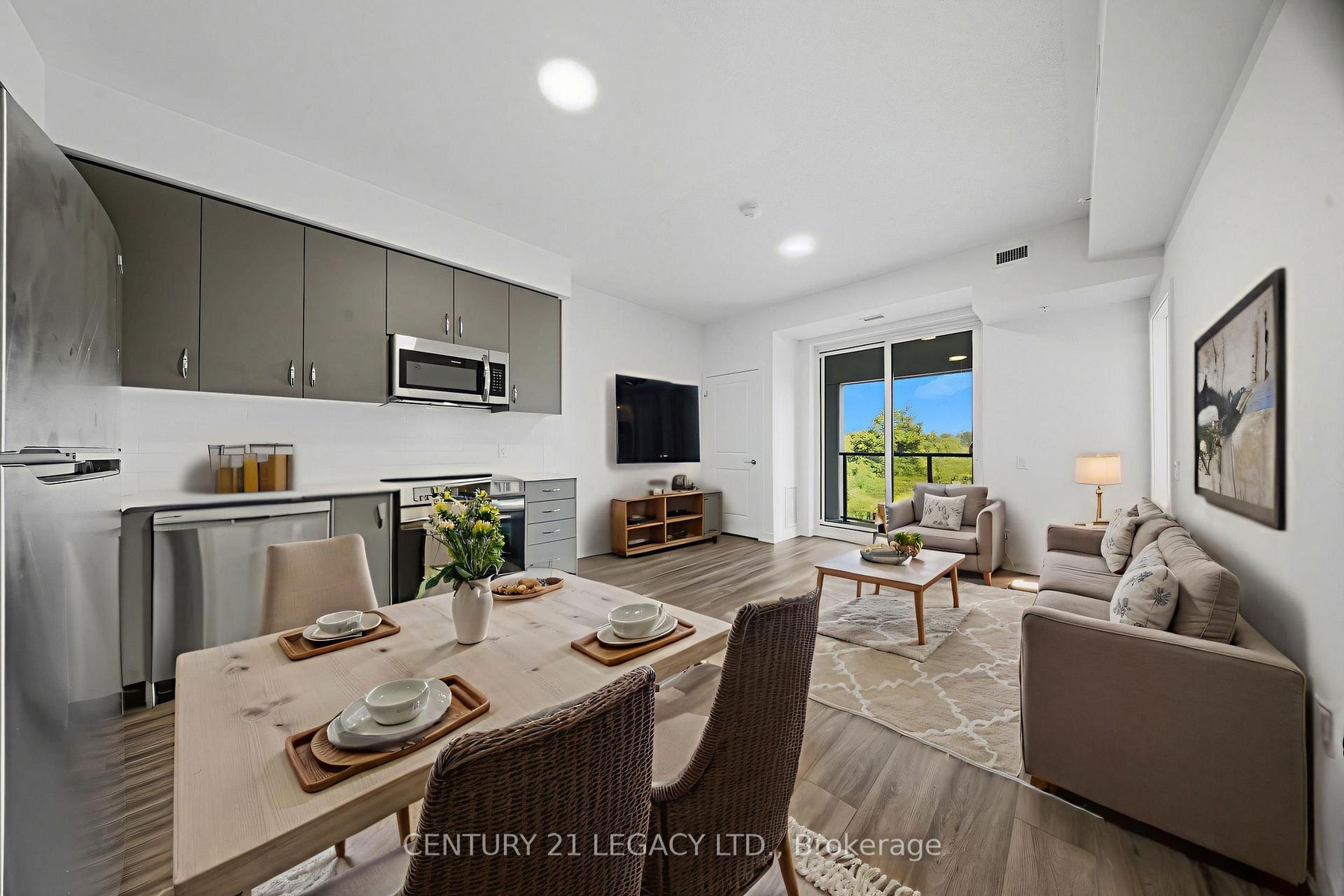Welcome to Peaceful Living in North Oshawa! Looking for a serene home close to nature and all amenities? This spacious one-bedroom condo is perfectly situated, backing onto a beautiful golf course in North Oshawa. Located on the third floor, it features two private balconies ideal for enjoying your morning coffee or evening glass of wine while taking in the lush, green views. This bright and airy unit boasts a modern open-concept layout with 9-ft ceilings, large windows, and quality upgrades throughout. The kitchen shines with stainless steel appliances, quartz countertops, a stylish backsplash, and vinyl flooring. Additional highlights include: One exclusive underground parking space A large locker for extra storage. Beautiful building amenities, such as Fitness Centre, study/business lounge, Party room, Outdoor BBQ area Pet spa Guest parking, and more! Prime location minutes to Highway 407, shopping, restaurants, and other essential amenities. Enjoy the perfect blend of modern comfort, convenience, and natural tranquility a place you'll love to call home. Please note some Pics are virtually staged, Furniture shown in pics is not real