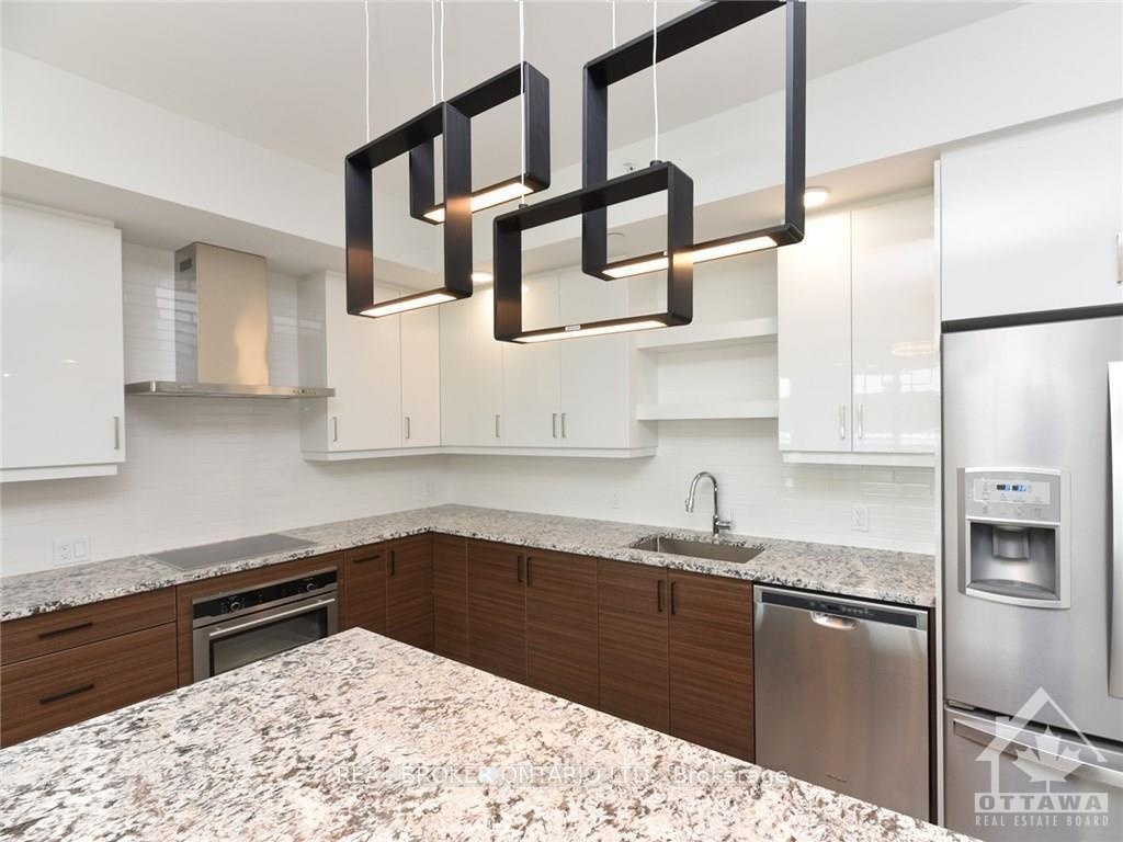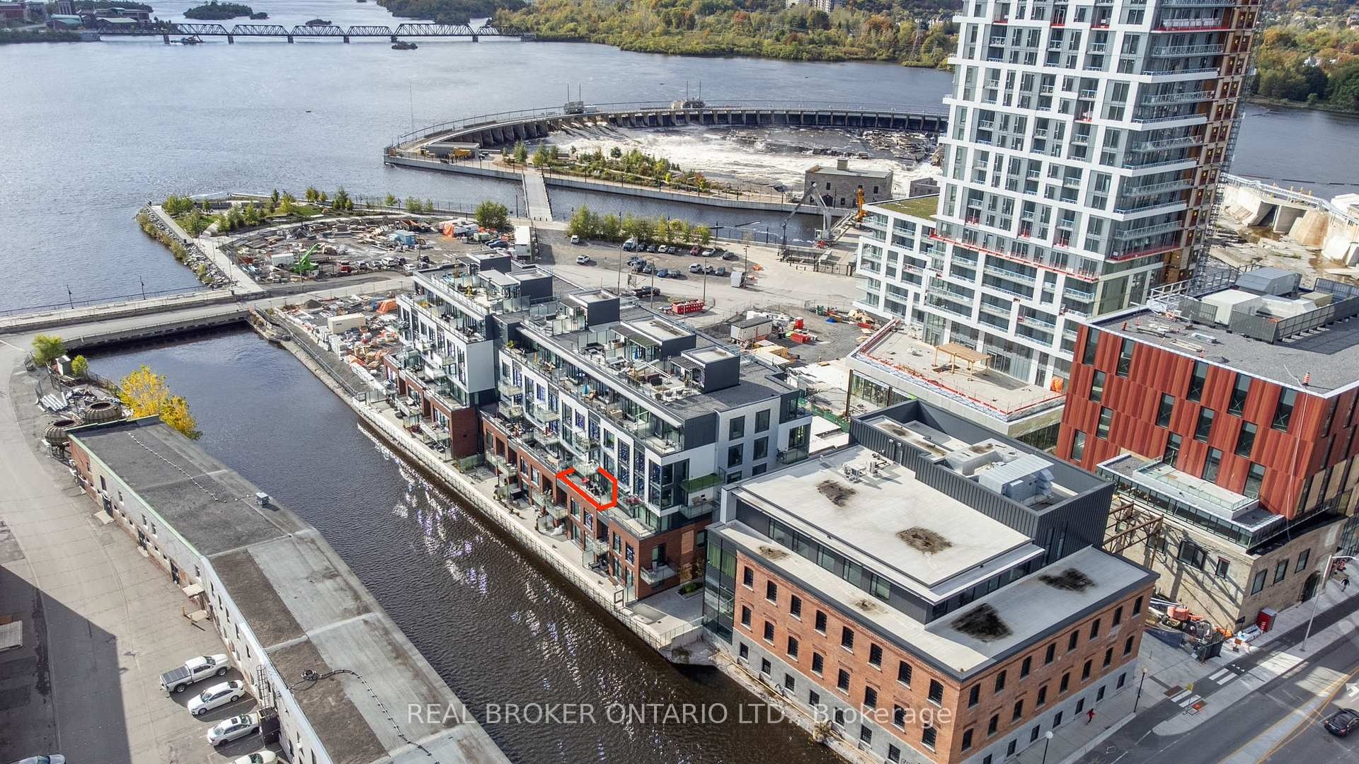 Exciting opportunity to live at one of Ottawa's most unique waterfront residences, Kanaal at Zibi! Perfectly positioned along the shores of the majestic Ottawa River and just minutes from both downtown Ottawa and downtown Gatineau, this spacious 2-Bedroom / 2-Bathroom condo offers a truly one-of-a-kind urban living experience. Located on the preferred canal side of the building, this suite features south-facing views overlooking the enchanting Buchanan Channel with stunning river and downtown skyline backdrops. Enjoy a bright, open-concept layout with a modern kitchen featuring a large centre island, abundant cabinetry, quartz countertops, and stainless steel appliances, flowing seamlessly into the living/dining area with hardwood flooring and floor-to-ceiling windows. Step outside onto your private terrace and take in the tranquil sounds of the river and the picturesque views. The primary bedroom includes a walk-in closet, ensuite bathroom, and ceiling fan, while the second bedroom offers excellent separation for added privacy, ideal for guests or a home office. A second full bathroom completes the unit. Building amenities include a gym, bicycle storage, and visitor parking. Part of the Zibi master-planned community, Kanaal offers an exceptional blend of sustainability, design, and convenience, just steps to Pimisi LRT station, museums, festivals, parks, and scenic pathways.Underground parking and storage locker included. In-suite laundry. Available December 1st.