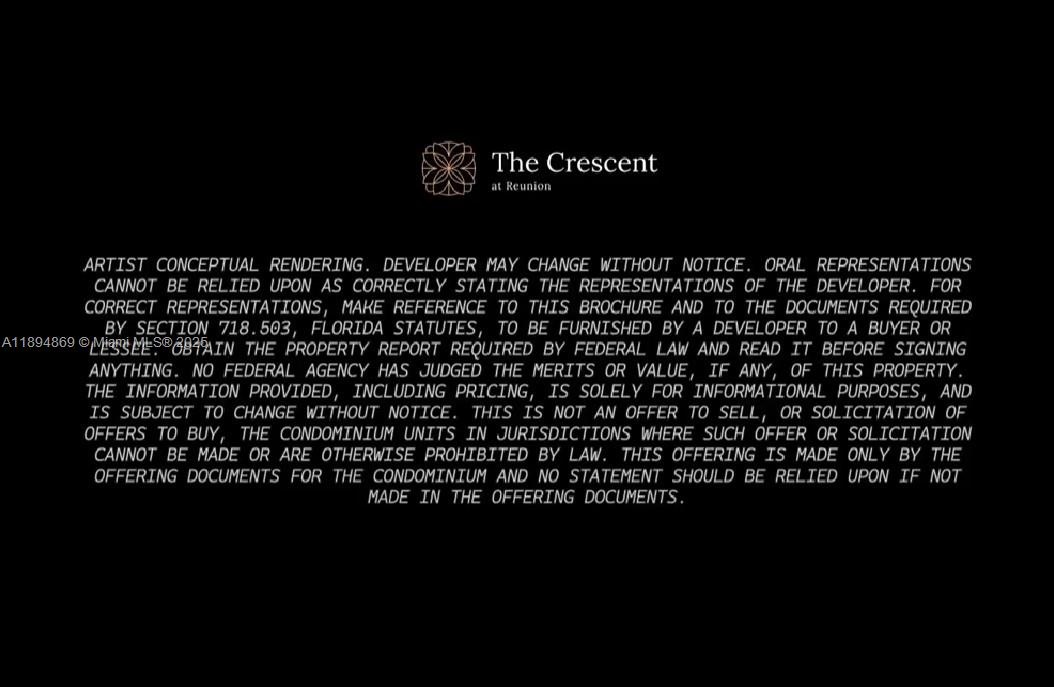 The best all-around investment properties in The Orlando-Kissimee area**CURRENTLY UNDER CONSTRUCTION 102 new units** Enjoy a luxury lifestyle, Live, Vacation, and/or generate income in these fantastic, spacious, no residential or rental restrictions properties, for a limited time we will include an individual, enclosed, covered Garage and a very exclusive Lifetime membership to Reunion Resort and Golf Club which your STR guests can also enjoy, FEATURES: 3 world-class golf courses designed by legends, tennis center, 7 pools, spas, rooftop terrace, fitness center, business center, water park, restaurants, café, bars, and much more!! 5 miles to Disney, and interstate I4, take advantage of this fantastic opportunity at The Crescent At Reunion