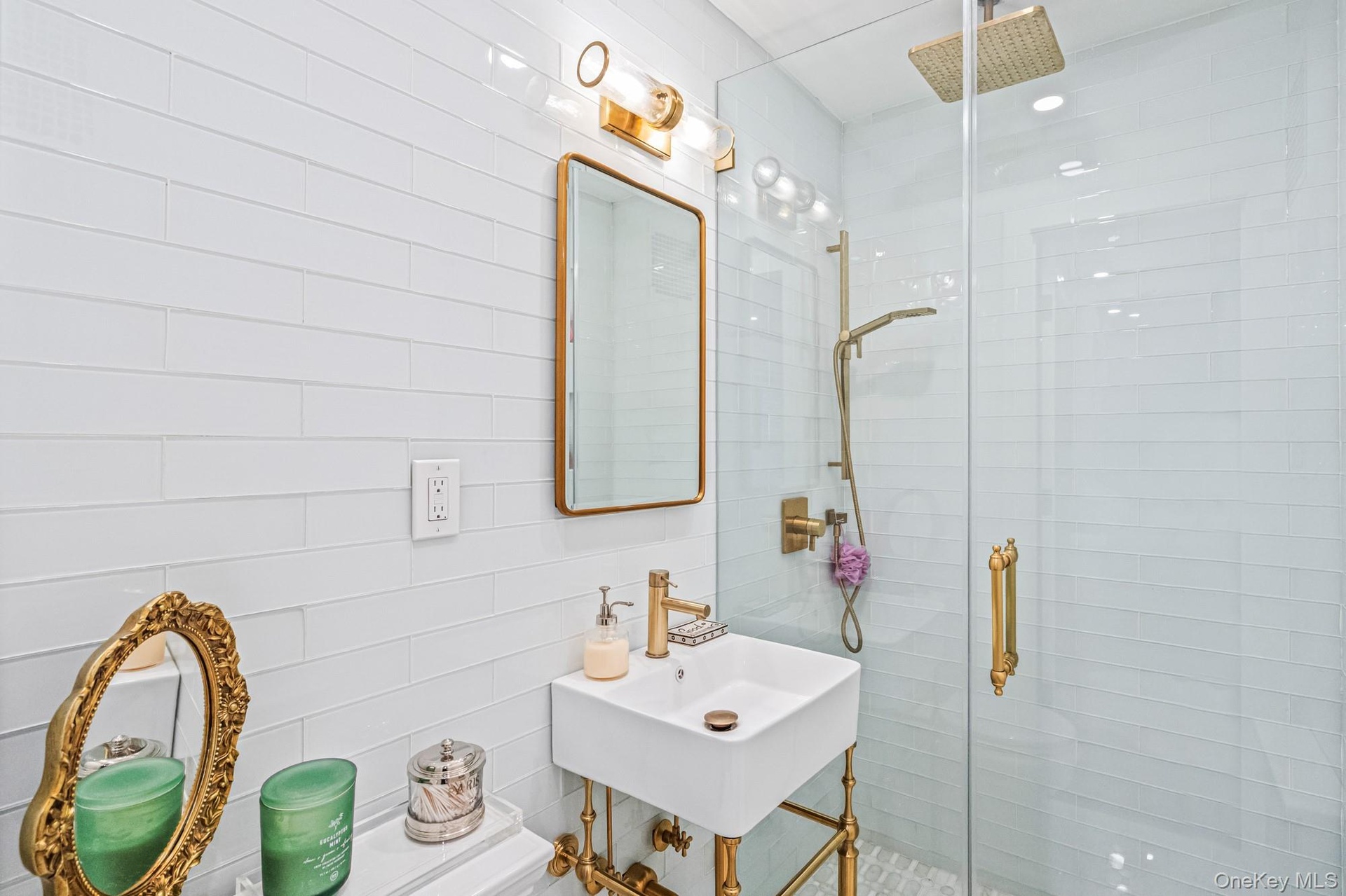 Both bathrooms are tastefully designed with marble tile floors and walls, Pottery Barn fixtures, and special-order plumbing shutoffs for the bathroom fixtures. The primary suite includes a full marble bathroom, a walk-in closet.