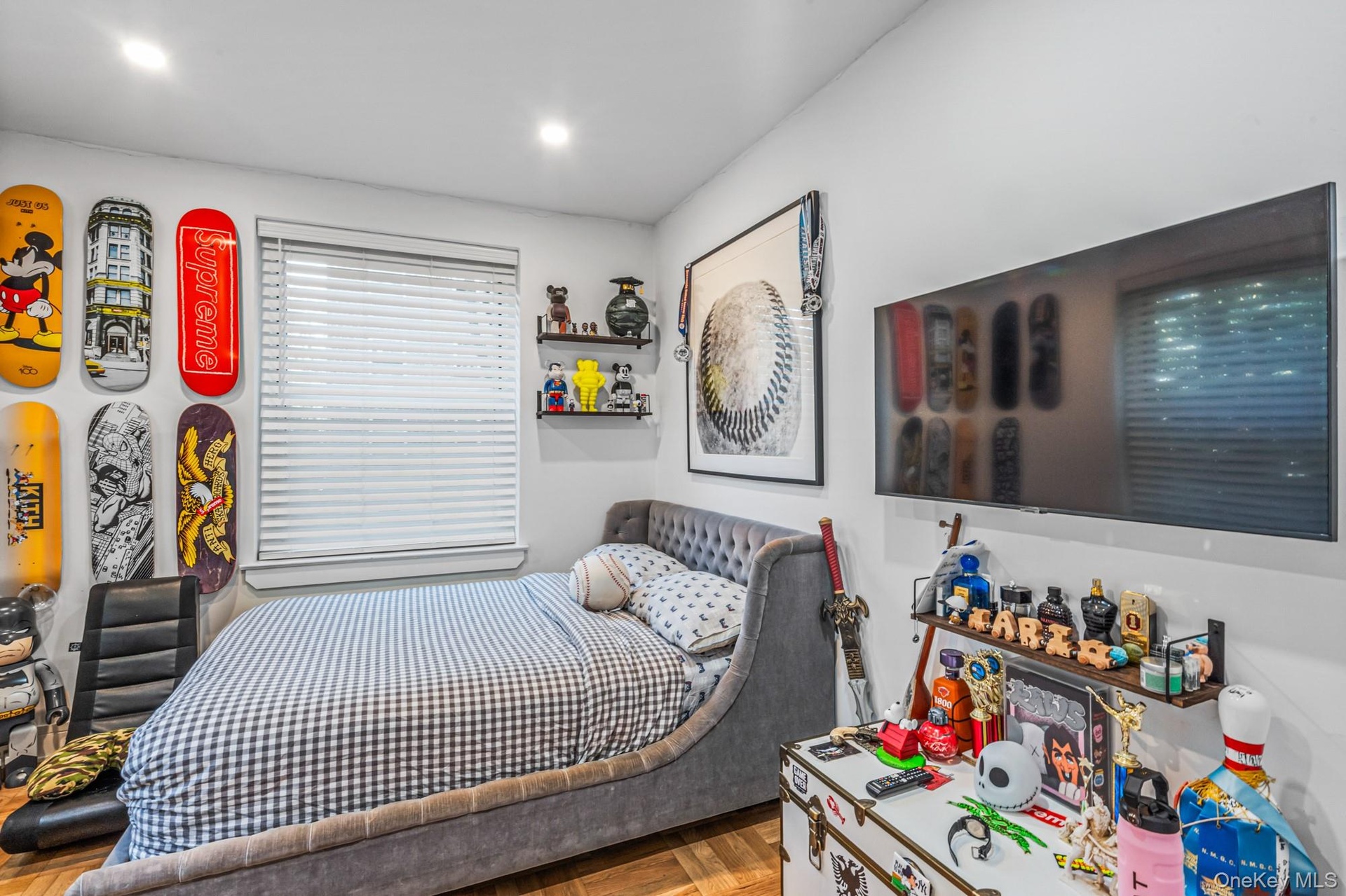 Hardwood parquet floors fully refinished, solid wood doors throughout, and all new Sheetrock, including soundproof walls adjoining the neighboring unit for enhanced privacy. The unit has been completely updated with new electrical (100-amp service and breakers), new outlets, new switches, and 35 LED recessed high-hat lights.