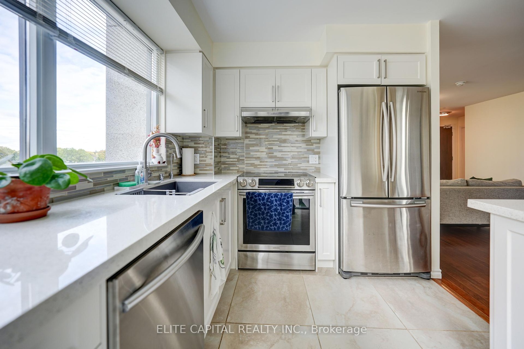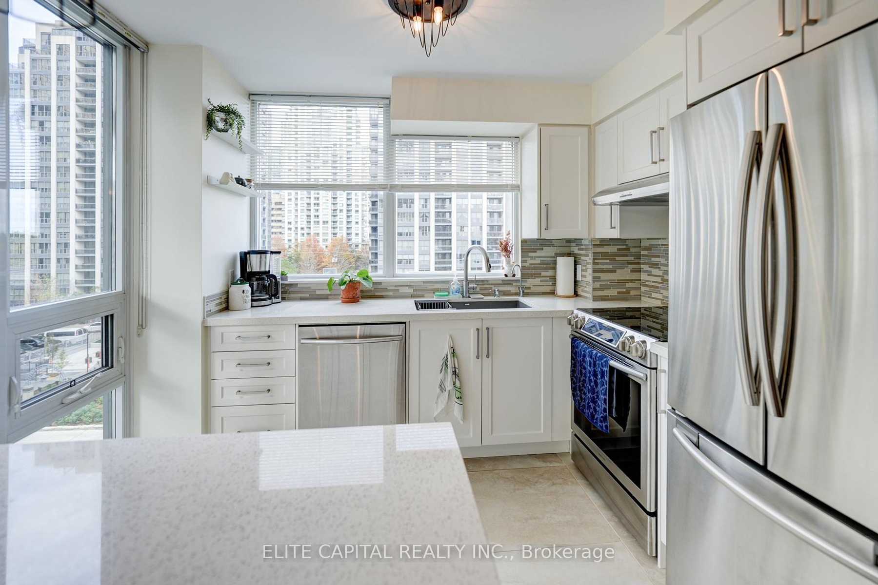 Bright and spacious 2 bedroom plus den corner unit with a rare layout featuring a windowed kitchen. Updated with quartz countertops, stainless-steel appliances, and a large open-concept den with a window, ideal for an office, play area, or guest space. Practical split bedroom design ensures privacy and functionality. Located in one of North York's most sought after areas, walking distance to two subway stations, supermarkets, restaurants, retail shops, and all amenities. Includes one parking space and one locker.