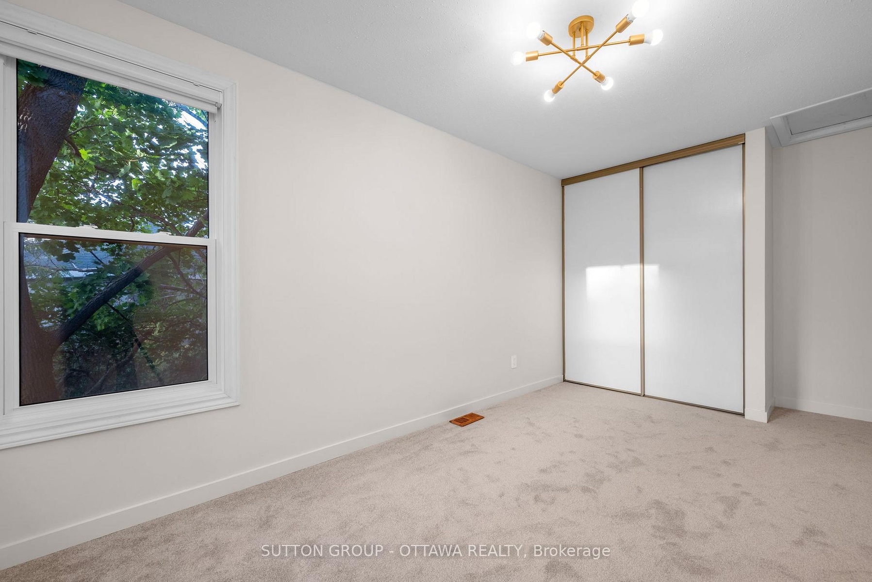 Spacious 1,700 SF end-unit townhouse in Britannia with walk-out basement. Recently renovated. Features enormous living spaces illuminated by large picture windows. Features include hardwood floors, large bedrooms, new appliances, and a timeless exterior (no vinyl here). Enjoy the view of the mature trees in the backyard (and no rear neighbours) from the elevated balcony off the kitchen (a great place for morning coffee). Minutes to the LRT. (Note: Furniture in photos is rendered. House is vacant.)