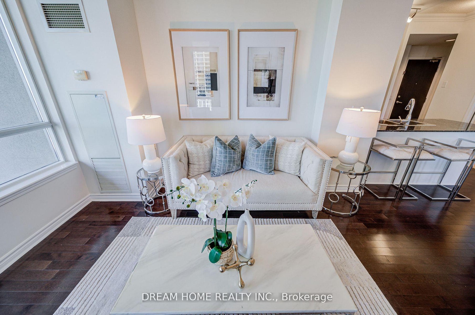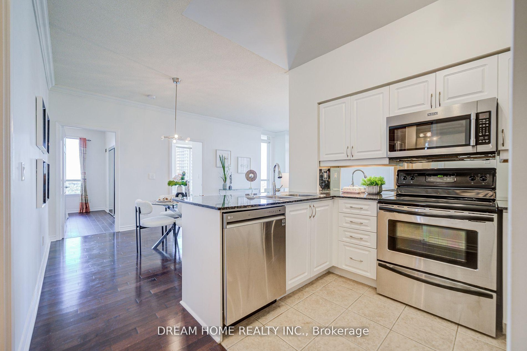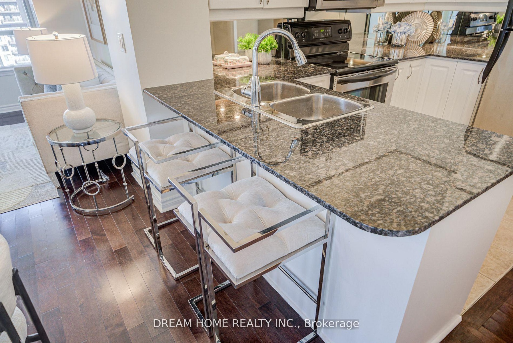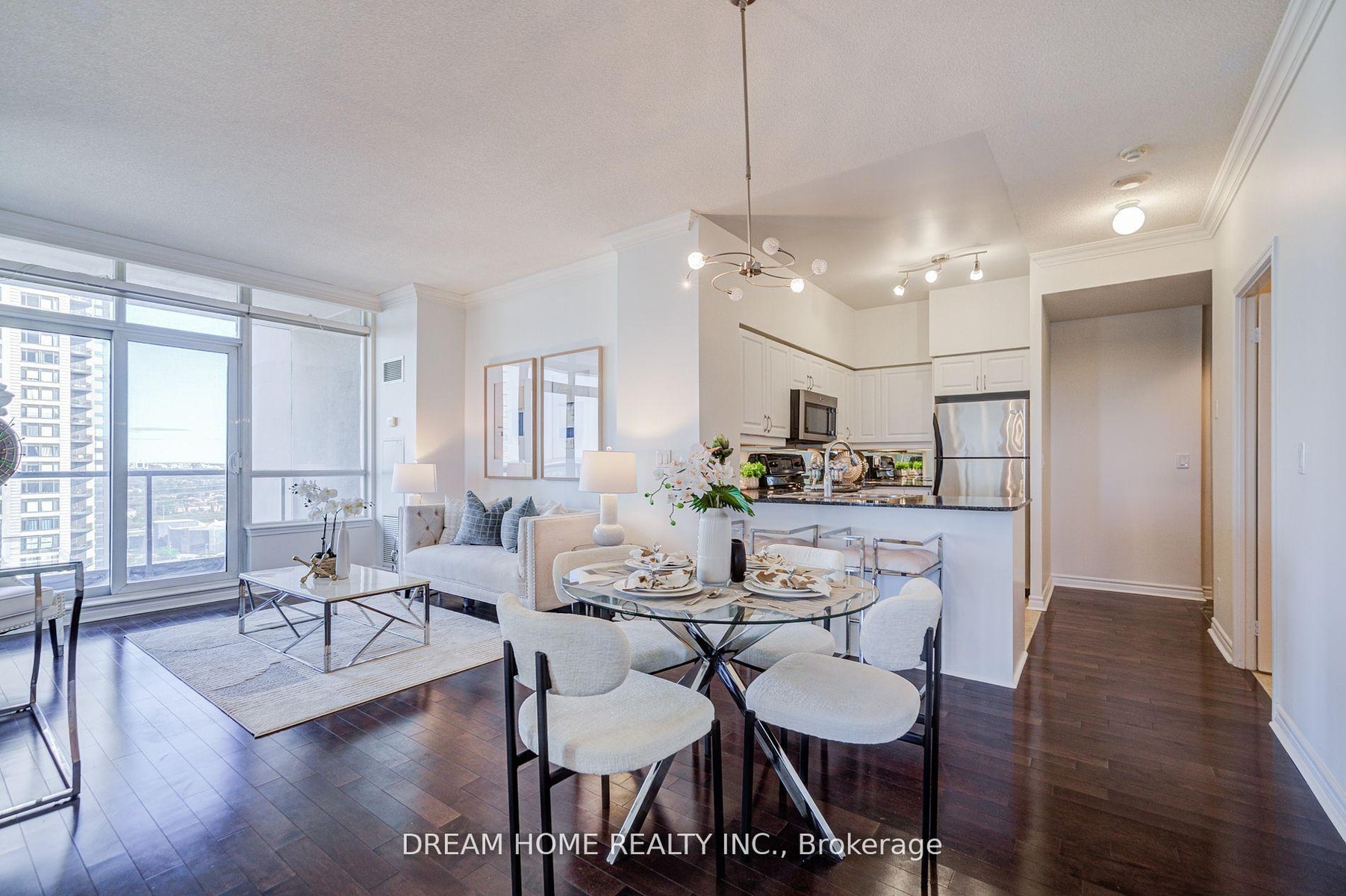 Welcome to this bright and spacious beautiful corner apartment, this unit is located in the heart of Mississauga's Square One area! Freshly renovated with new paint and laminated floor, featuring an open-concept layout with a combined living and dining room. Kitchen Features Stainless Steel Appliances & Breakfast Bar. Includes One Parking and A Locker. Don't miss this incredible opportunity amazing value and location! 24 Hours Concierge, building amenities include indoor pool, gym, recreation room. Immaculately Maintained 845 Sq Ft In The Prestigious One Park Tower! Steps to Square One, Sheridan College, Celebration Square, public transit, Central Library, and all major highways.