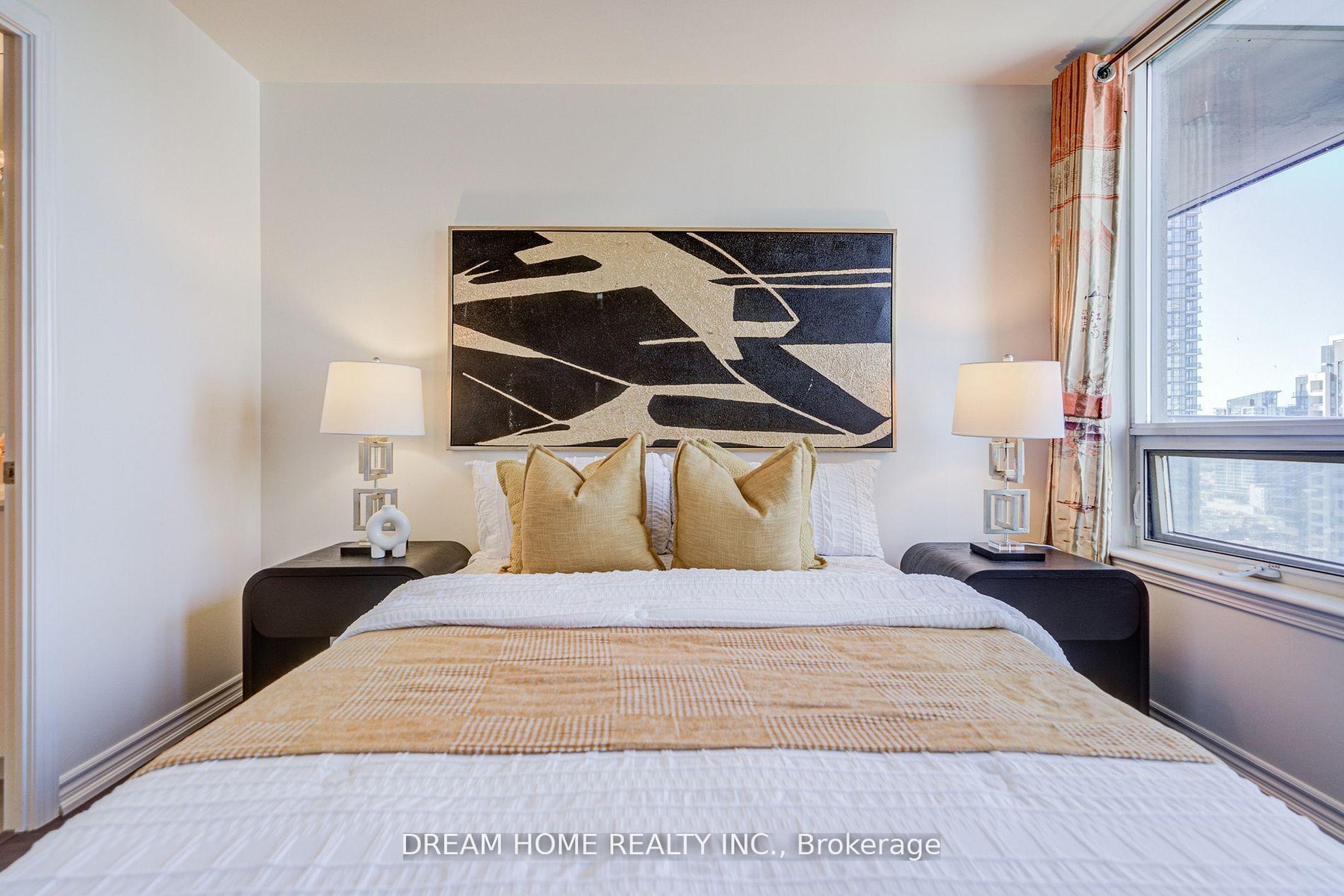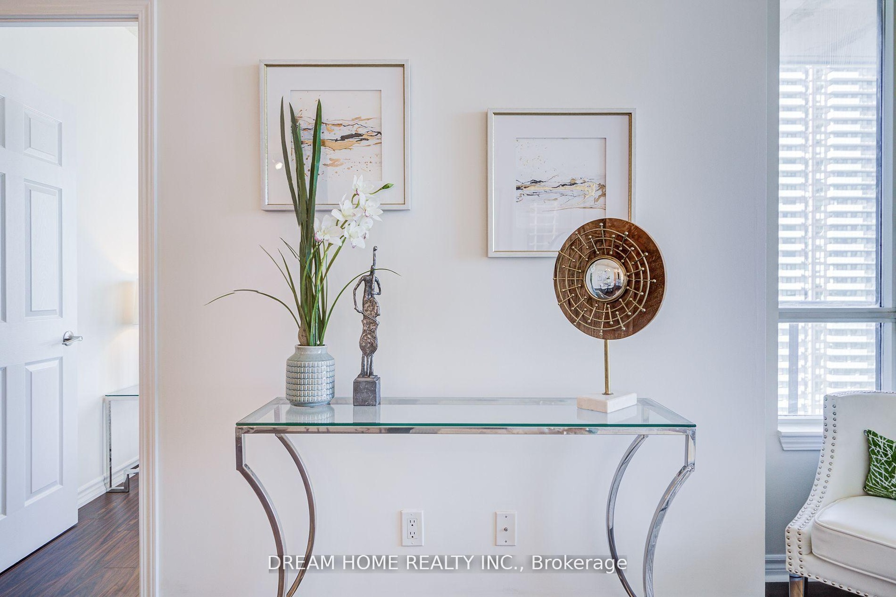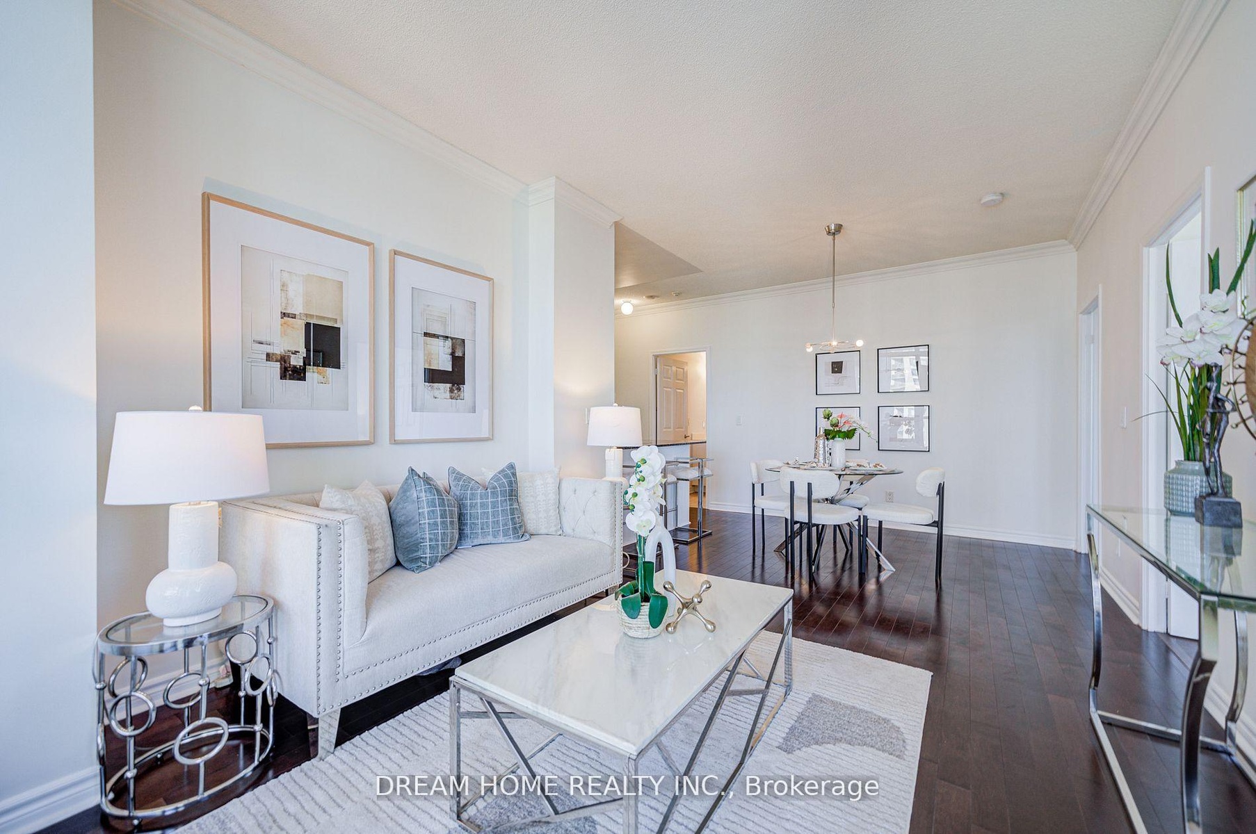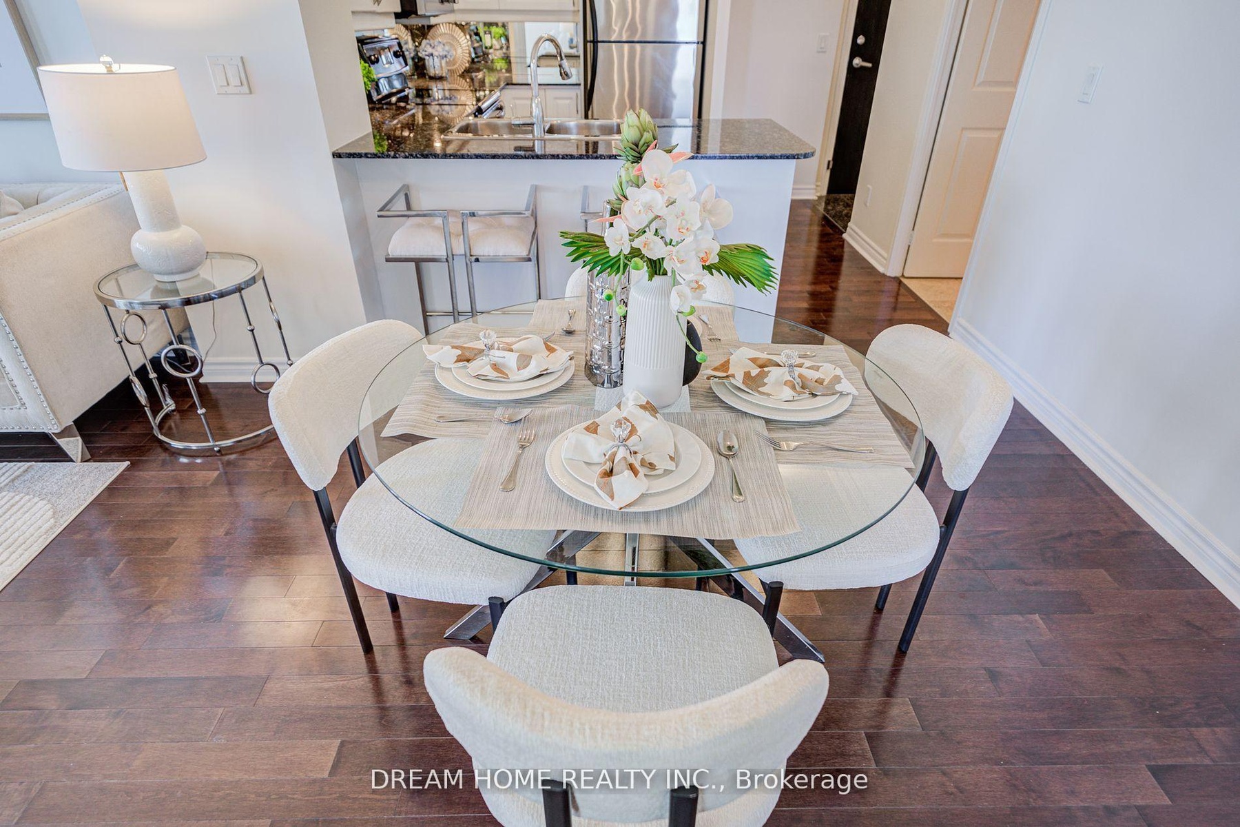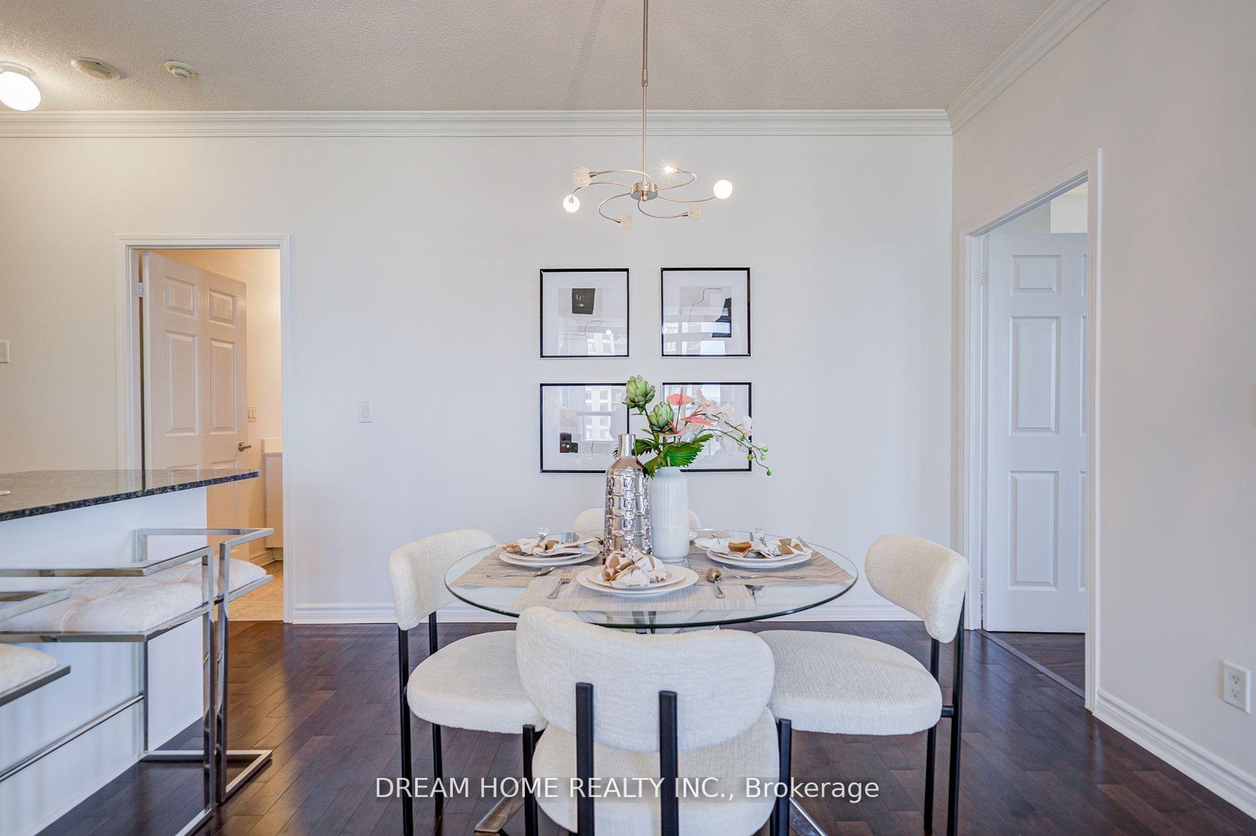 Welcome to this bright and spacious beautiful corner apartment, this unit is located in the heart of Mississauga's Square One area! Freshly renovated with new paint and laminated floor, featuring an open-concept layout with a combined living and dining room. Kitchen Features Stainless Steel Appliances & Breakfast Bar. Includes One Parking and A Locker. Don't miss this incredible opportunity amazing value and location! 24 Hours Concierge, building amenities include indoor pool, gym, recreation room. Immaculately Maintained 845 Sq Ft In The Prestigious One Park Tower! Steps to Square One, Sheridan College, Celebration Square, public transit, Central Library, and all major highways.
