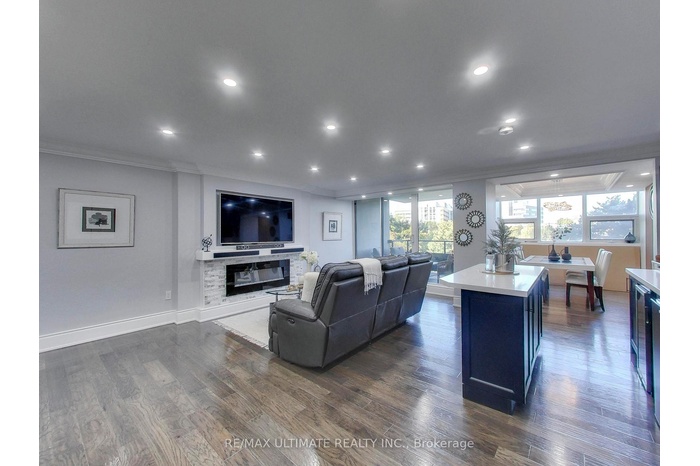 Welcome to Unit 406 at 75 Emmett Avenue - a stunning fusion of comfort, style, and sophistication in Torontos desirable Mount Dennis community. Completely reimagined from top to bottom, this residence is a true showpiece of modern design and craftsmanship, a rare opportunity in one of the citys most exclusive boutique buildings. Step inside and be greeted by over 1,200 sq.ft. of beautifully curated living space featuring 2 spacious bedrooms, 2 elegant bathrooms, and a versatile den that easily converts to a 3rd bedroom (option to install sliding doors for complete privacy), home office, or formal dining area. The custom chefs kitchen is the heart of the home designed with quartz countertops, a large centre island, abundant cabinetry, and premium Samsung appliances. A built-in bar and coffee station with breakfast bar seating flows seamlessly into the open concept living and dining areas, making entertaining effortless. The inviting living room boasts a feature electric fireplace with stone façade, warm LED pot lighting, and a wall of windows that bathe the space in natural light. Step outside to your private 100 sq.ft. balcony, perfect for morning coffee or evening relaxation with north-facing views. Enjoy thoughtful touches throughout: engineered hardwood flooring, crown molding, a separate laundry room with side-by-side washer/dryer and sink, and an upgraded 100-amp electrical panel. The primary suite features custom built-in closets and a private 2-piece ensuite, while the second bedroom offers generous space and a double closet. Located steps from Scarlett Woods Golf Course, Humber River trails, TTC, the upcoming Eglinton Crosstown LRT (Line 5), and Mount Dennis GO/UP Express Station, this home combines urban convenience with tranquil surroundings. This is Toronto living at its finest - modern, inviting, and quietly sophisticated.
