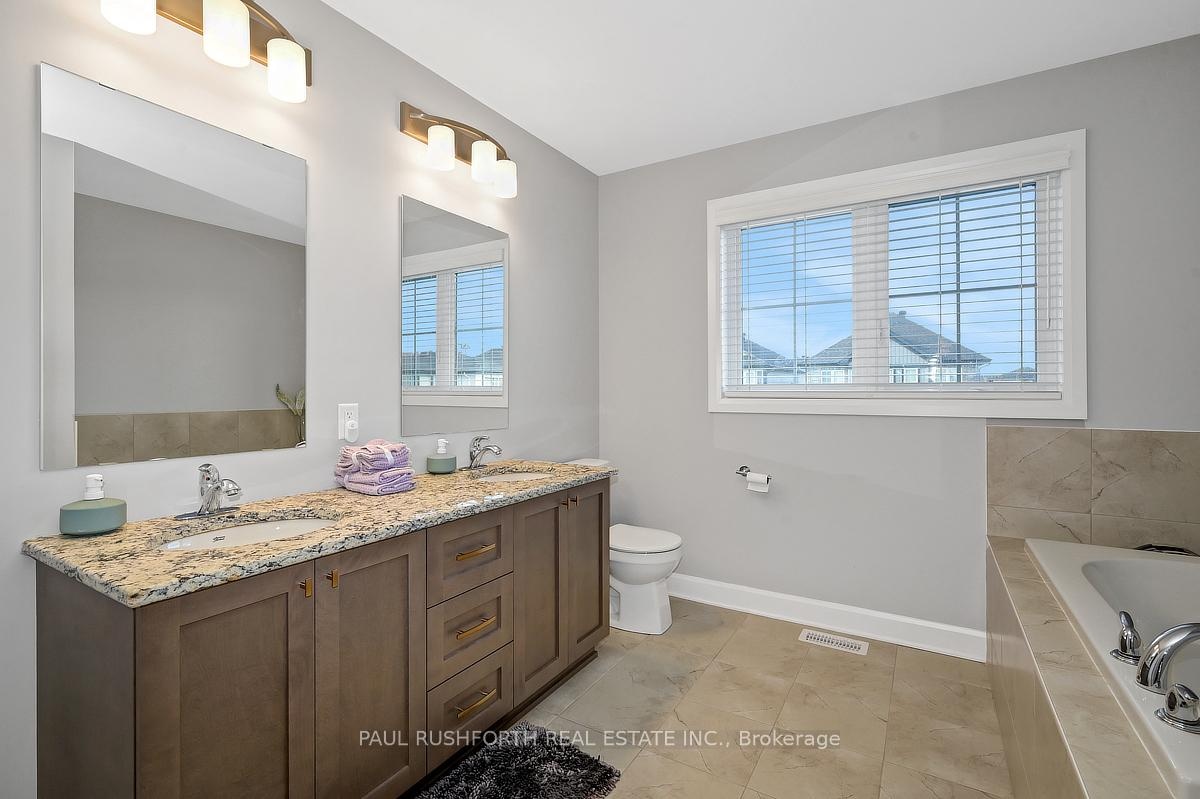 IMMACULATE. IMPRESSIVE. A STUNNING HOME. 2024 Built TARTAN Homes ASHTON MODEL with 2976 square feet of well designed living space + 600sqft in lower level: MAIN FLOOR HOME OFFICE, 3.5 bathrooms, 4+1 BEDROOMS. This SINGLE DETACHED in the Edenwylde community of DESIRABLE STITTSVILLE is a SHOWSTOPPER and is sure to please. Loaded w/ upgrades and designer finishes thru-out the FAMILY FRIENDLY floor-plan. Boasting an OPEN CONCEPT LAYOUT, this beauty has it all: stylish MODERN exterior, 9FT CEILINGS on main floor, SMOOTH CEILINGS, hardwood flooring, LUXURIOUS KITCHEN w/ premium appliances, subway tile backsplash, quartz counters, DOUBLE WALL OVEN/MICROWAVE, elegant light fixtures and loads of pot lights, custom window coverings and more. Oversized windows FILL THE HOME W/ NATURAL LIGHT. Lovely principal retreat: huge WIC and 5 piece ensuite bathroom (dual sinks, soaker tub, glass shower). Large family bathroom for bedrooms 2/3/4. The 'oh so nice' convenience of 2ND FLOOR LAUNDRY. The FULLY FINISHED BASEMENT provides a tremendous opportunity for LARGE or MULTI GENERATIONAL FAMILIES with a huge family room, 5TH BEDROOM and full bathroom. (easy conversion for inlaw suite). Cozy front porch. WONDERFUL CURB APPEAL bursting with Style sitting on a 47x100ft CORNER LOT. 2 Car garage with DOUBLE WIDE DRIVEWAY. This one has it all! Close proximity to wonderful schools, parks and amenities. Some photos have been virtually staged. Flexible closing available. Must See!