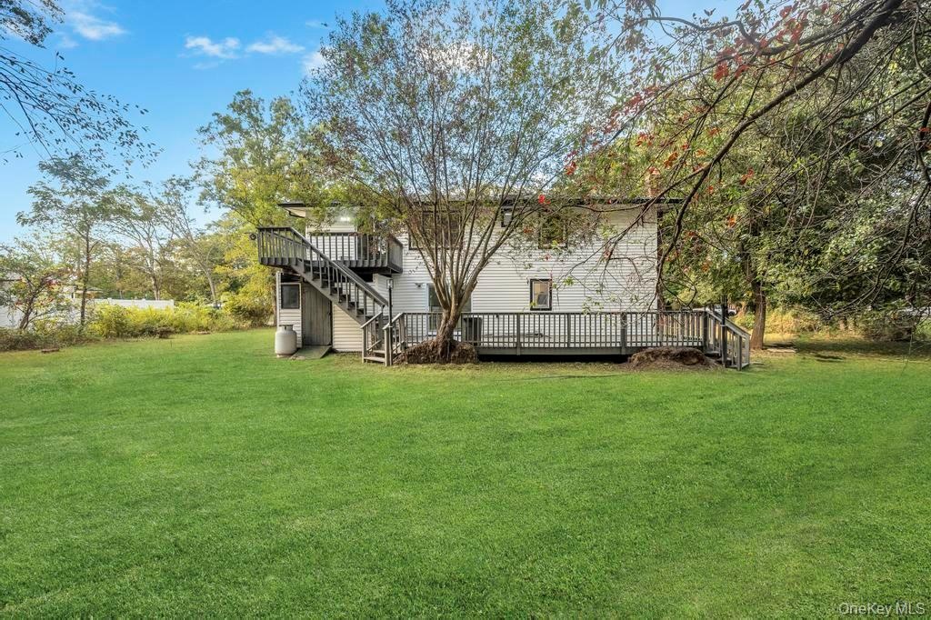 - View of yard featuring a wooden deck