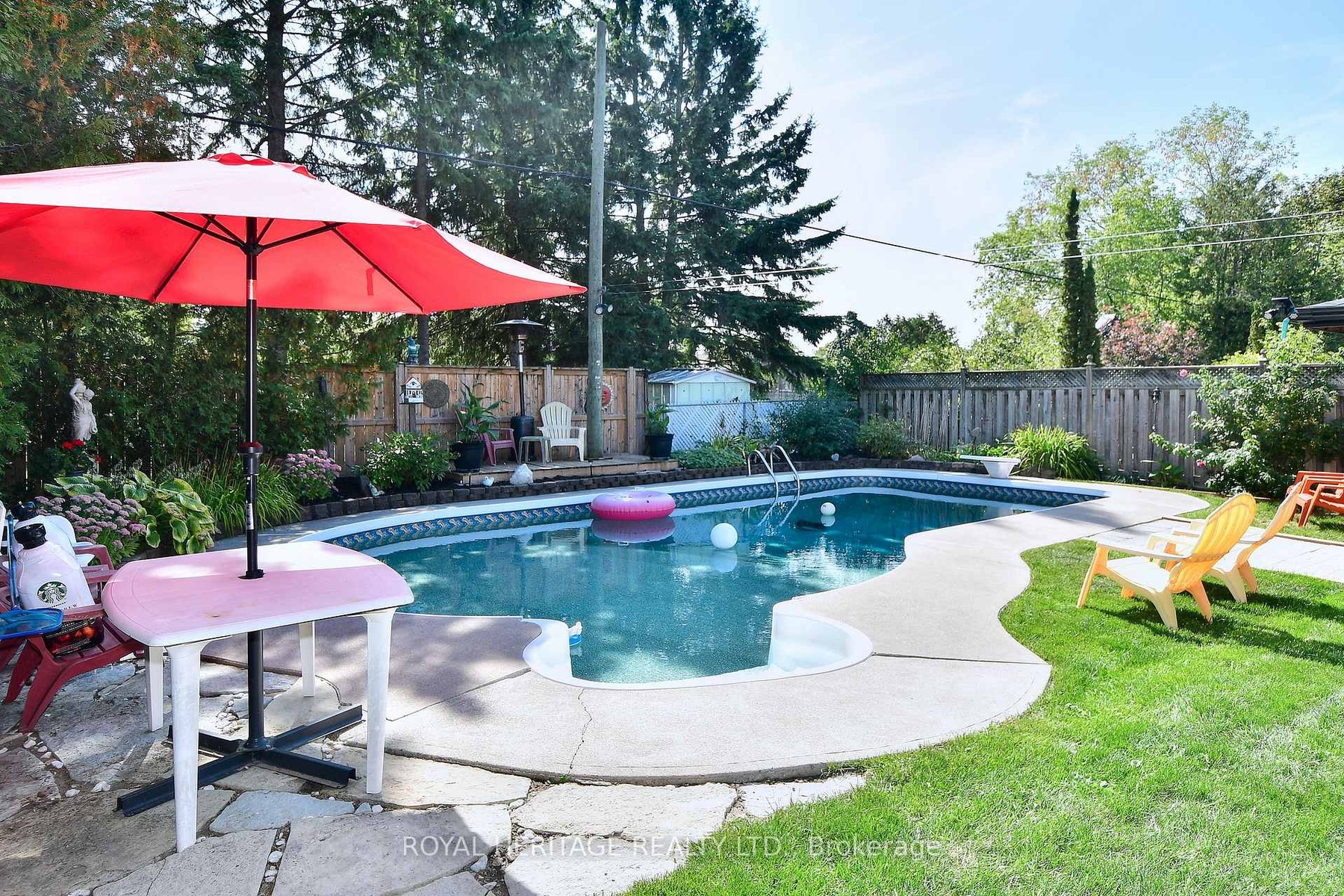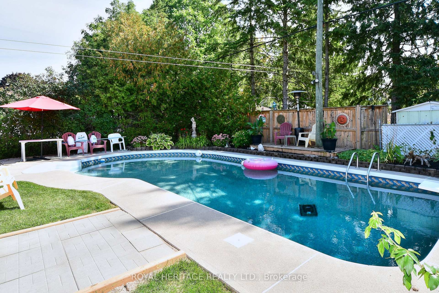 Welcome to 245 King George St. in Peterborough's South End. This beautiful all Brick bungalow shows pride of ownership both inside and out. This curb appeal will definitely catch your eye. The back yard Oasis and Shelter will occupy your outside time as you enjoy pool side enjoyment with a large outside deck and covered shelter for those sunny afternoons. Located close to the Lansdowne corridor for all of your shopping needs and the new Misken arena. The main level has a very functional centre floor plan and the lower level has a large family room for larger entertaining and family fun. Recent upgrades include: New pool liner, chlorinator and robot pool cleaner (2025), New Patio door, Siding and Dormer (2024), New eaves trough, fascia and soffits (2023), New Furnace and AC (2019), New 25 year shingles in 2017. Put this home at the top of your list.