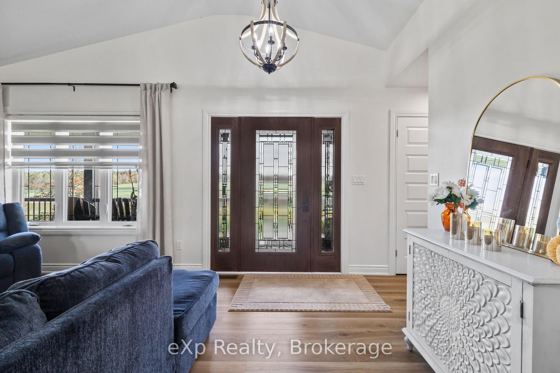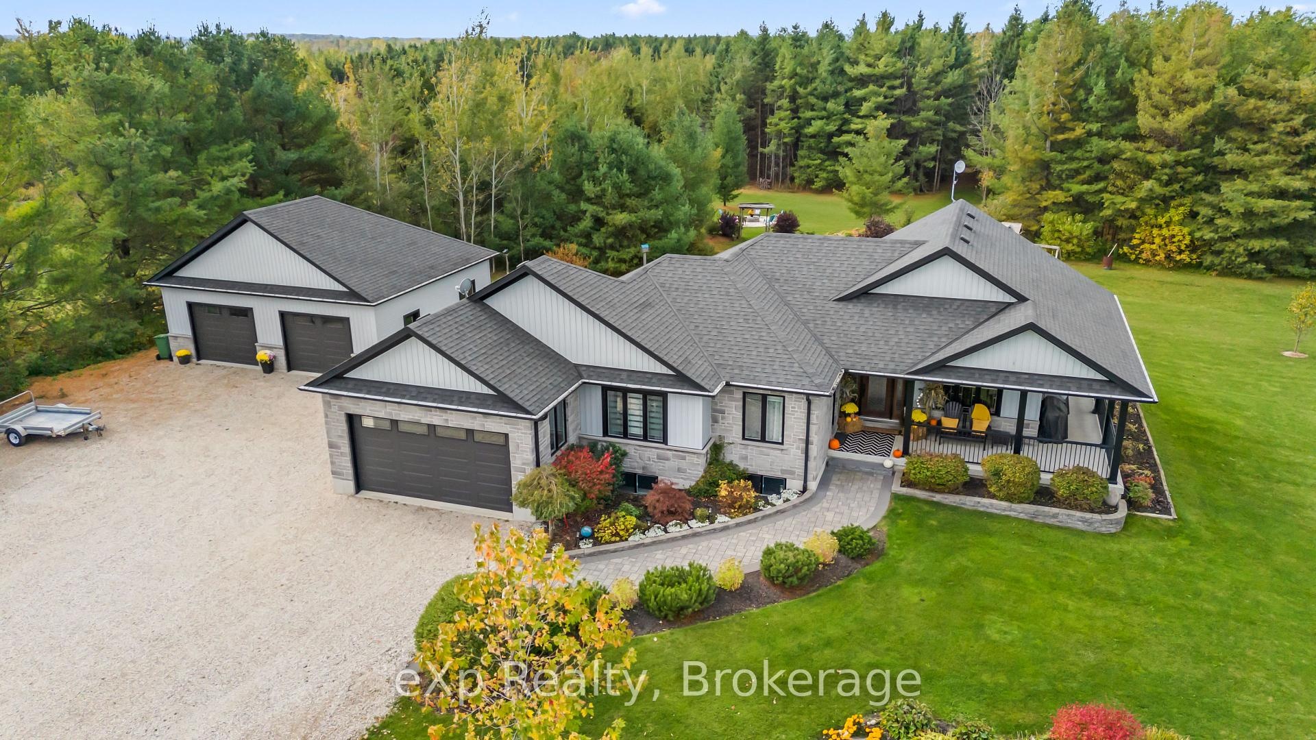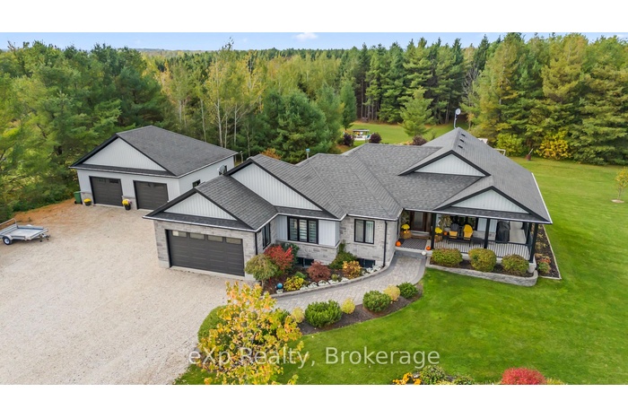 Welcome to country living at its finest. Nestled on a peaceful 10-acre treed property just outside Conn, this beautifully maintained Candue-built bungalow (2016) blends modern comfort with timeless charm. Surrounded by nature, this home offers the perfect balance of privacy, functionality, and warmth - ideal for families, retirees and those seeking country living. Over 2,700 sq. ft. of finished living space, featuring 3+1 bedrooms, 3 full bathrooms, and a bright, open-concept layout filled with natural light. The main floor living area opens to the covered porch - the perfect spot to enjoy your morning coffee while taking in peaceful views of the surrounding farmland. The fully finished lower level includes a second kitchen, a fourth bedroom, and a large family room, offering flexibility for multigenerational living, guests, or a separate suite. Outside, you'll find a detached 900 sq. ft. insulated shop, ideal for tradespeople, car enthusiasts, or anyone who loves to work with their hands. The attached double-car garage, landscaped grounds, and private trails add to the appeal of this property. Built with care and craftsmanship, every detail reflects quality construction and thoughtful design from the ample storage and functional layout to the peaceful setting that surrounds you. Located in Southgate, just minutes from Conn and within easy reach of surrounding towns, this is a rare opportunity to own a modern, well-built country home where quality meets tranquility.
