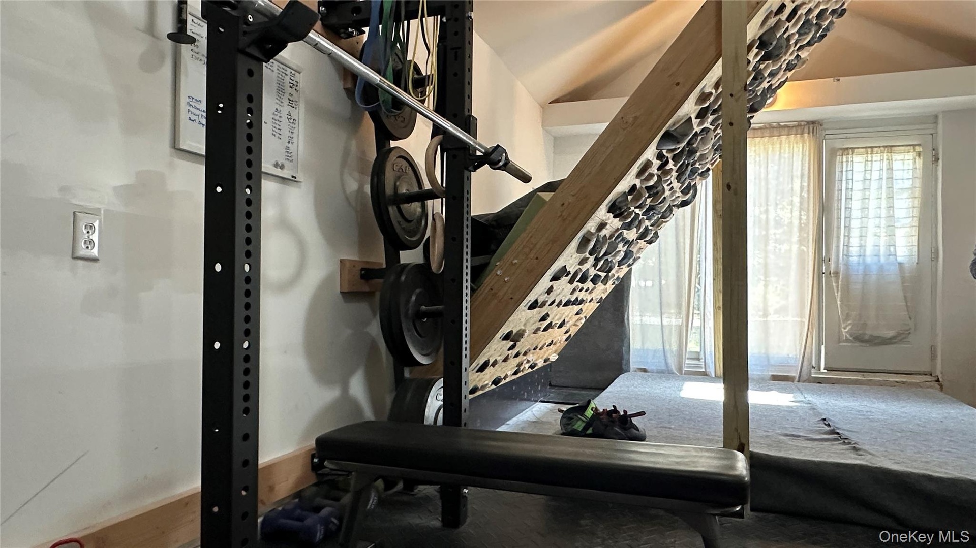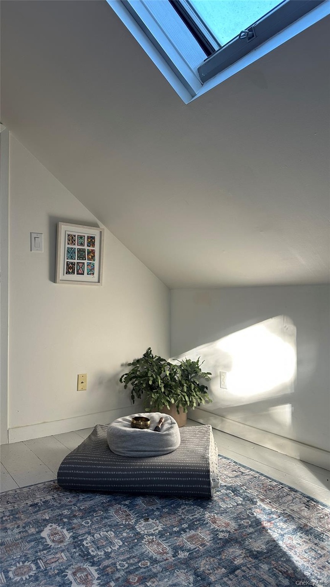 - Exercise room featuring lofted ceiling