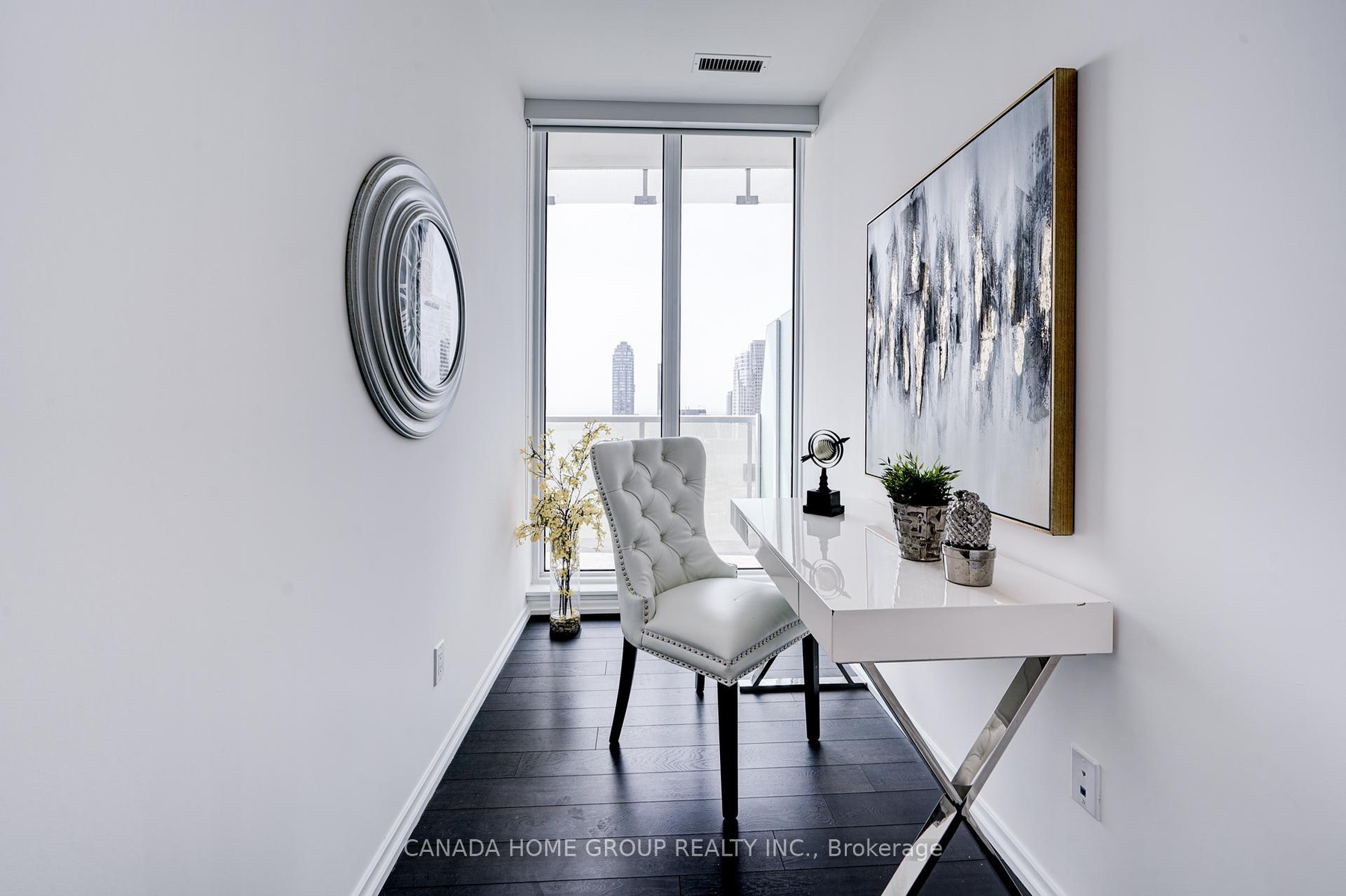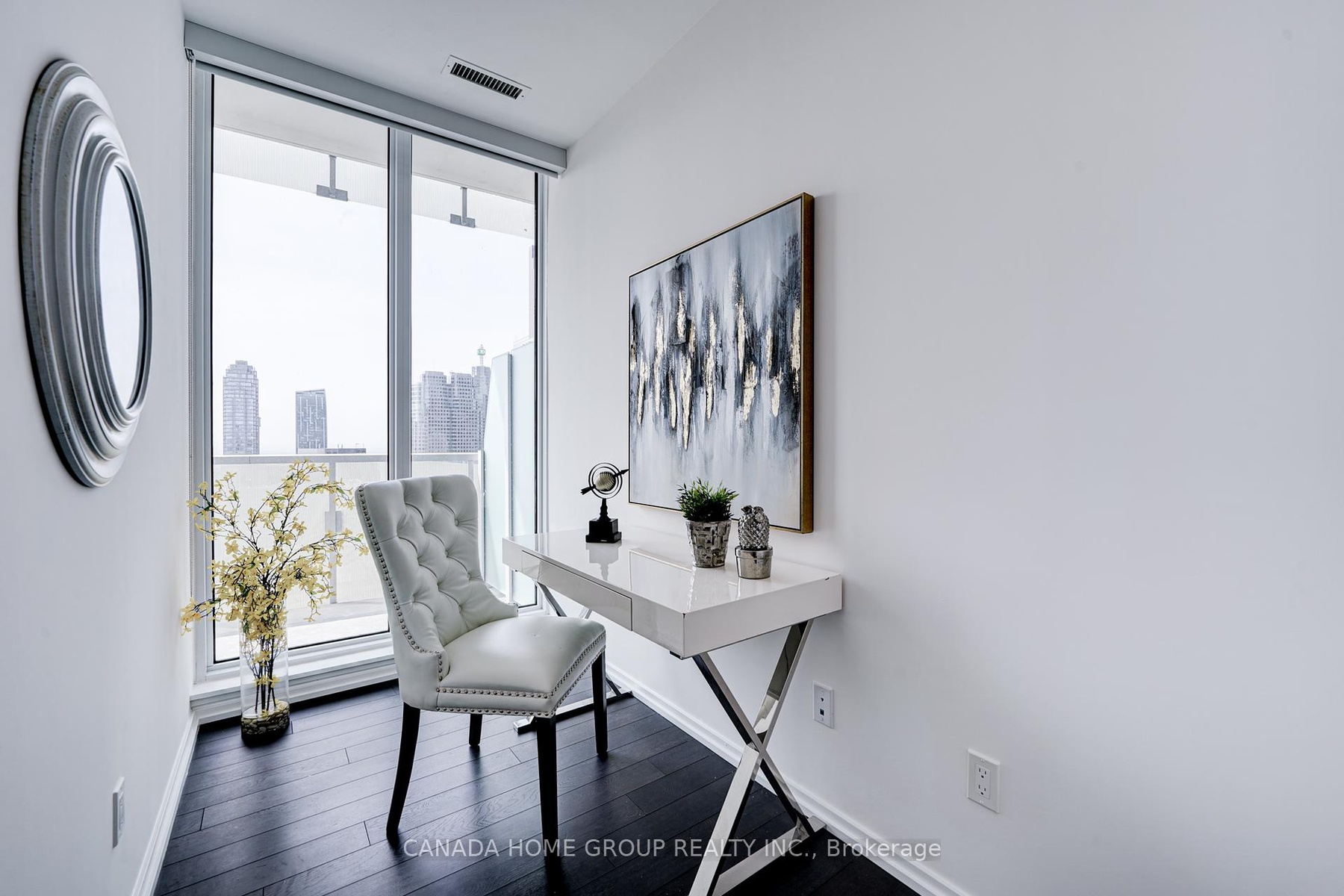 Stunning And Spacious 1+1 Corner Unit With Unobstructed Panoramic S/E Views To City/Cn Tower And Lake! Separate Den W/ Window Perfect For Home Office Or 2nd Bedroom. 9' Ceilings. Huge Wrap-Around Windows W/ Lots Of Nature Light. 1 Locker Included. Spent $$$ On Upgrades. High End Finishes, Bright Kitchen W/ Center Island. Right In The Heart Of Downtown Just Cross Eaton Centre. Steps To Queen Subway, Dundas Square, Financial District, Shopping Mall And Restaurants. 100 Walk Score! 5-Star Amenities Including 24 Hr Concierge, Fitness Centre, Guest Suites, Party Room & More! Student Welcome! Lease Term Negotiable (from 8 mth up to 12 mth). High-End Appliances Include B/I Fridge, Cooktop Oven, Microwave, B/I Dishwasher, Washer, Dryer, Existing Light Fixtures, Custom Window Coverings. Additional $200 For One Parking Space.