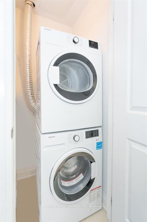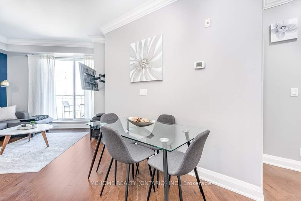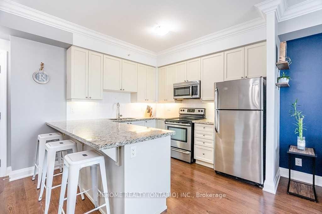 Bright and sunny Unit With A Practical Layout, 9' Ceilings, Crown Molding, In-Suite Laundry, & Tasteful Upgrades. Large Kitchen With A Breakfast Bar, An Undermount Sink, Granite Counters, & Stainless-Steel Appliances. Spacious Balcony With The Included Tiles & Views Of The Courtyard. Great Features include a Walk-In Closet, 1 Owned Parking Spot, & A Locker. Amenities Include 2 Gyms, A Rooftop Pavilion, & More.
