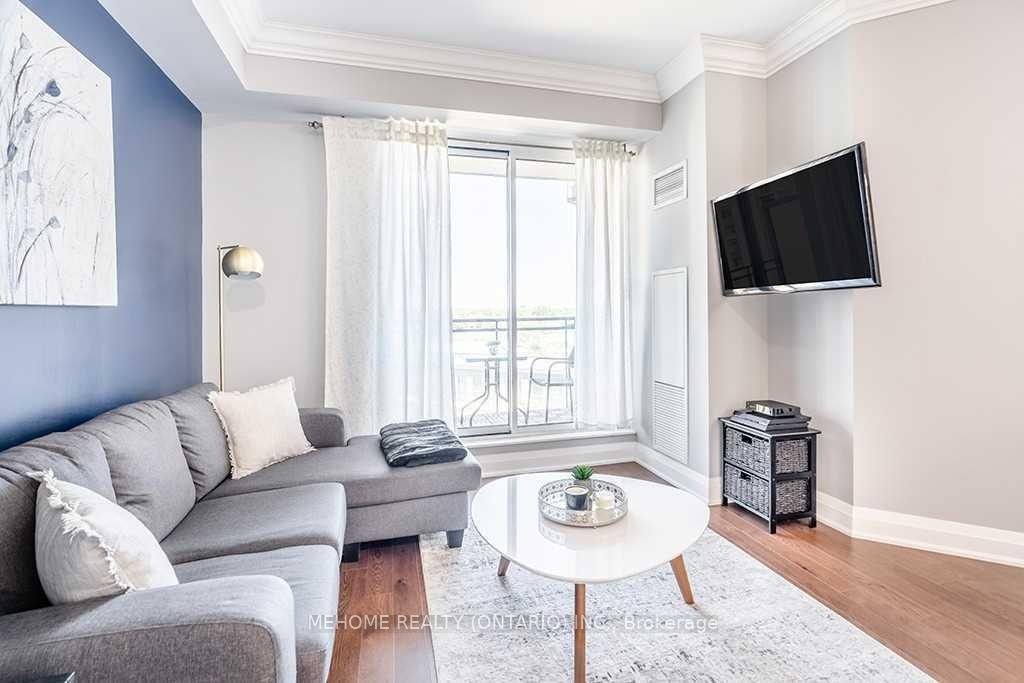 Bright and sunny Unit With A Practical Layout, 9' Ceilings, Crown Molding, In Suite Laundry, amp ; Tasteful Upgrades.