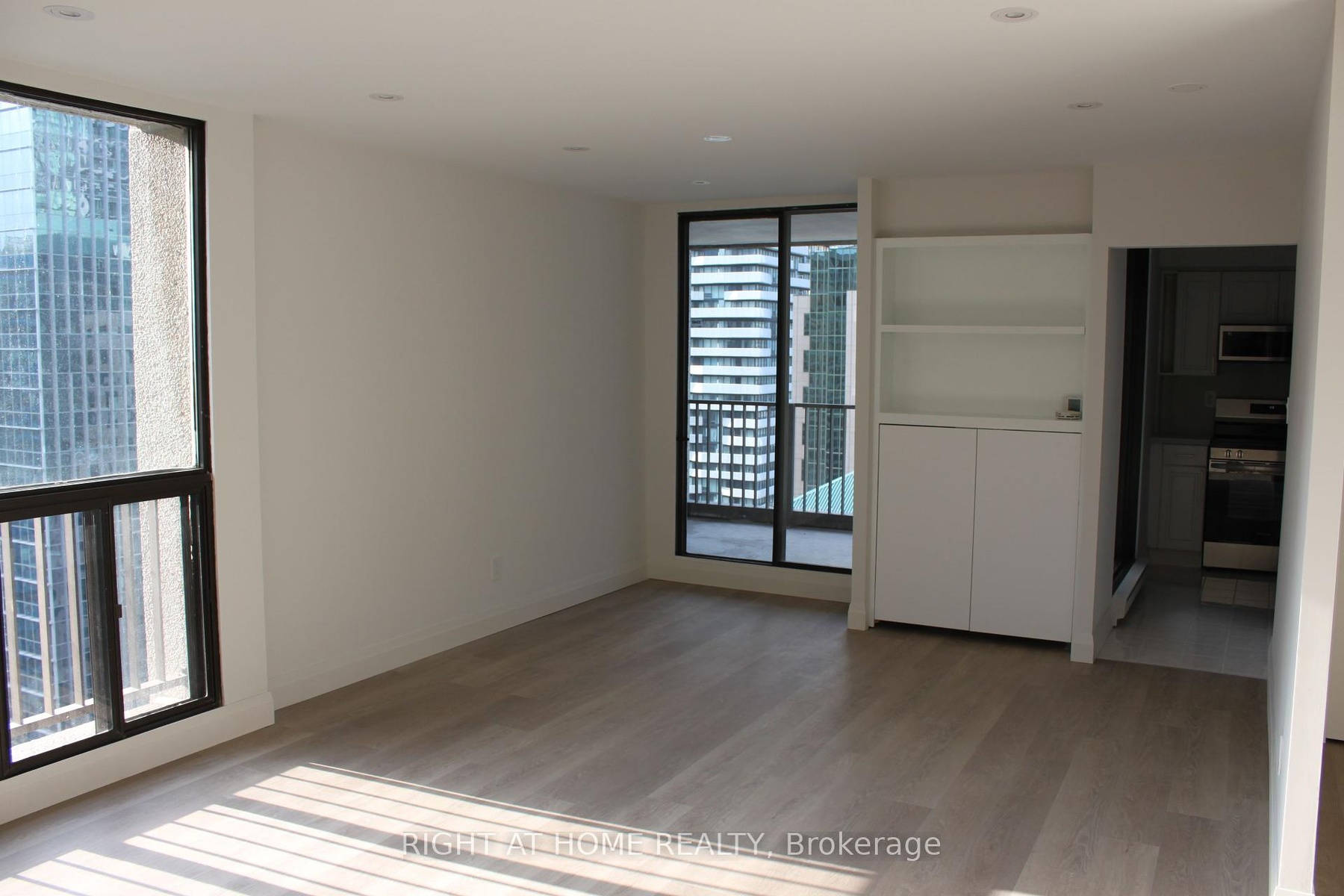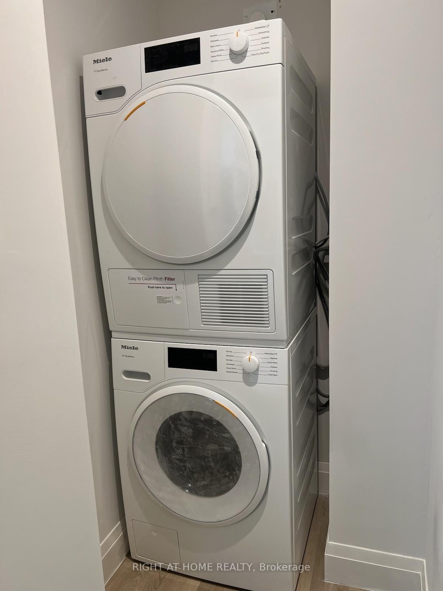 **Welcome to Harbour Square** bright & spacious 1 bedroom (just under 800 sq ft), end unit with rare balcony in prestigious building. Newly renovated with vinyl flooring thru'out, new kitchen w/ s/s appliances and new miele washer and dryer. All utilities Included as well as Bell Fibe TV package with Crave/Starz and Bell Fibe Unlimited internet service/Wifi! Great building amenities include 24 hour concierge, 60 ft rooftop pool, huge garden terrace with BBQ's, fully equipped gym, sauna, squash court, private shuttle bus, ample visitors parking and guest suites at affordable prices. Easy, walkable access to the Financial District, Union Station, the Path, Rogers Centre. As per building bylaw rules, no pets, no smoking within suite. Parking spot included in rent! *Blinds to installed by Landlord*