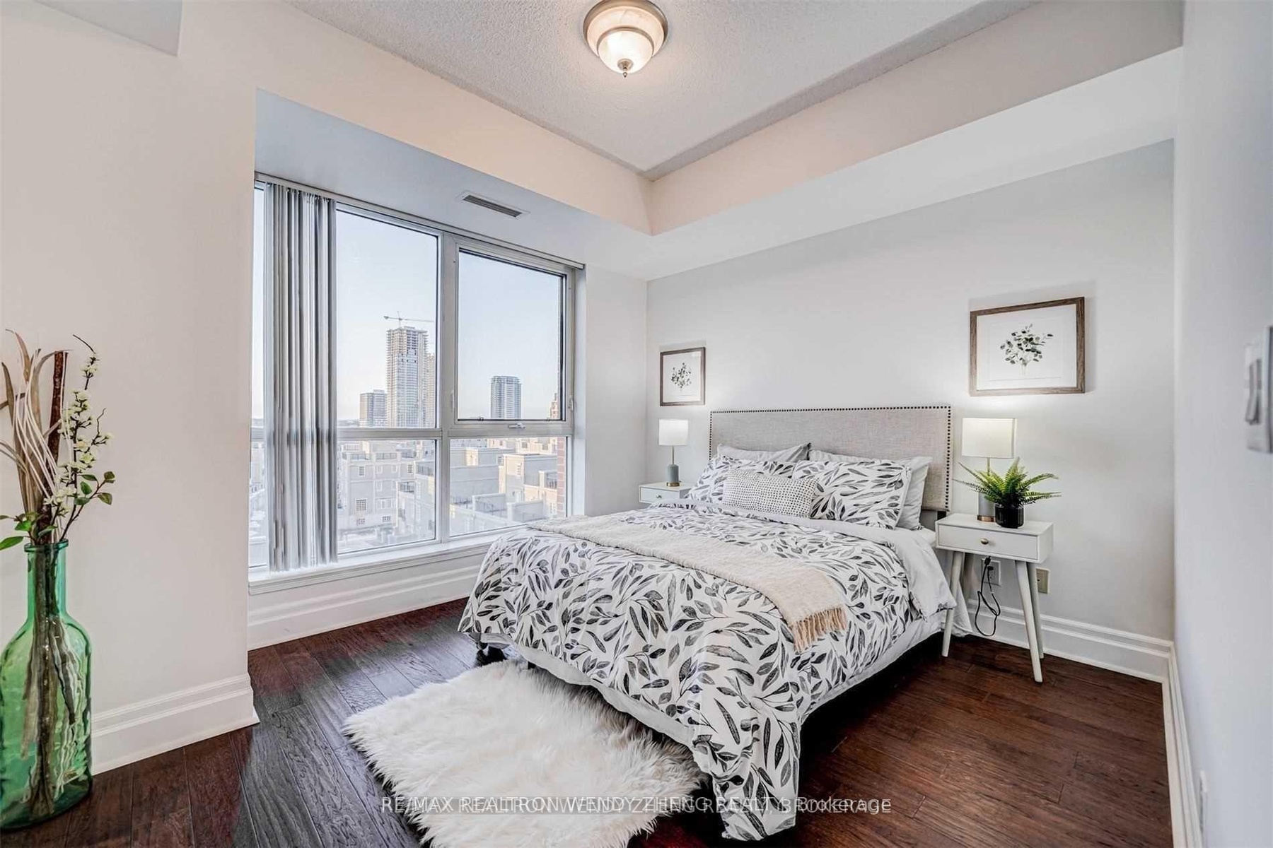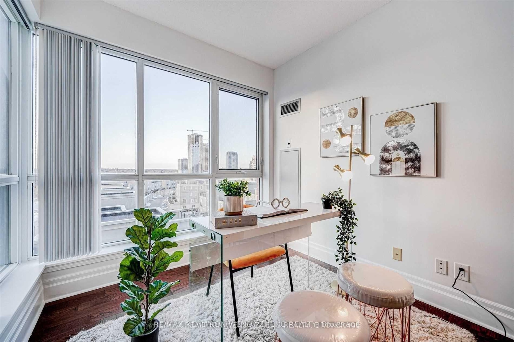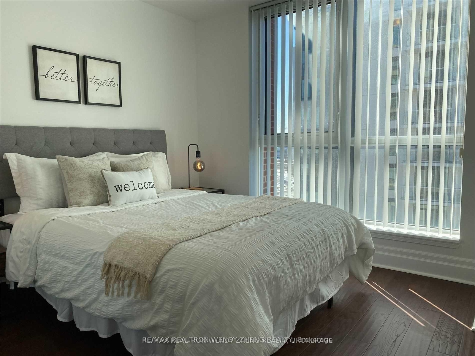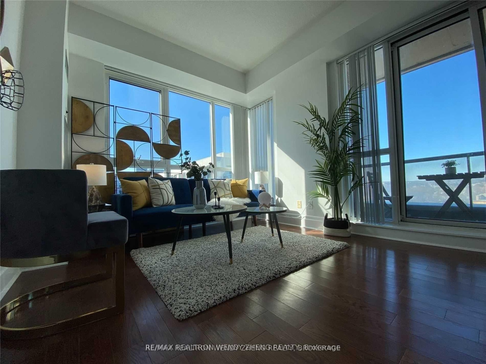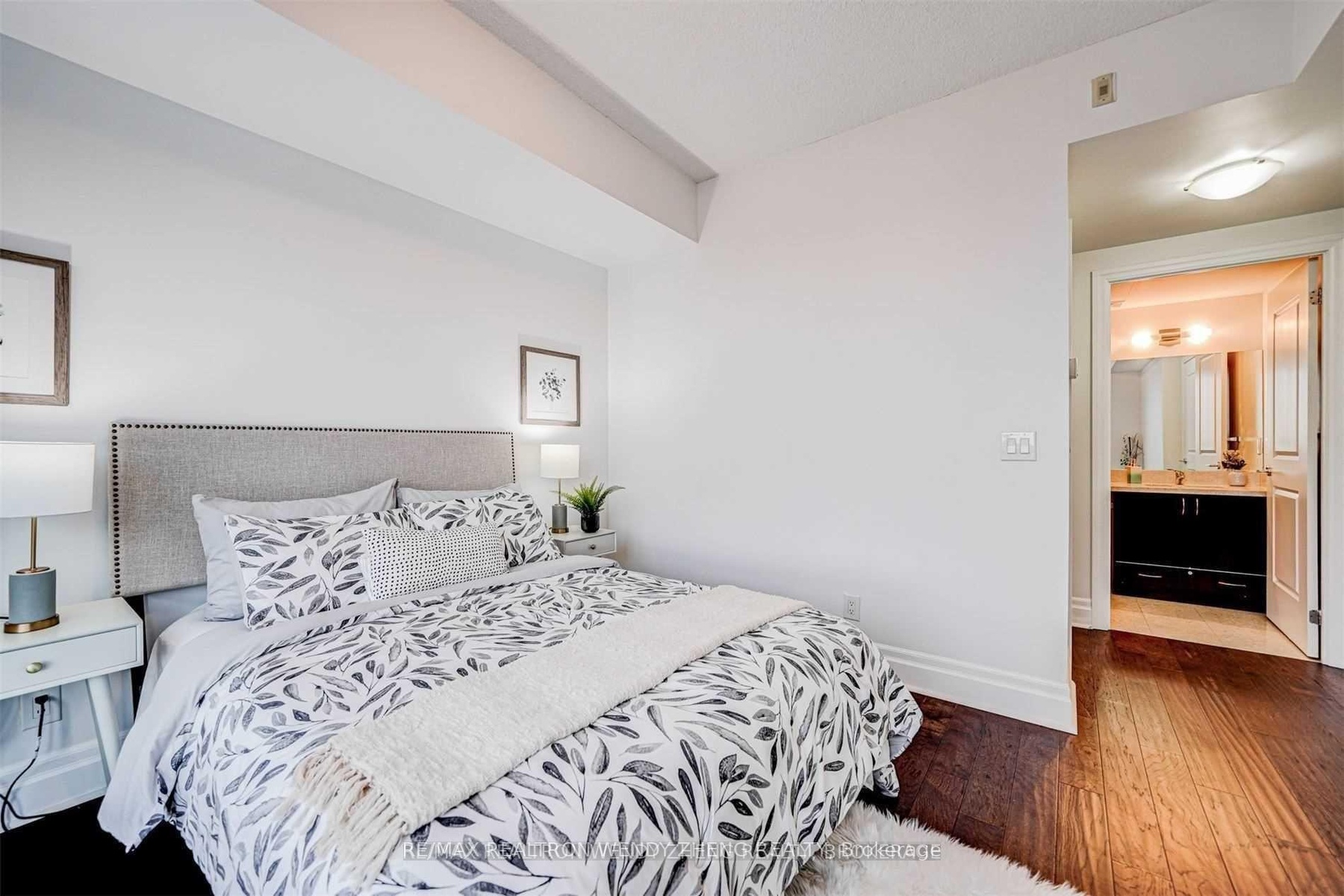 Remington's Iconic Rouge Bijou Condos in Downtown Markham! This oversized 2+1 bedroom, 2 full bath corner suite is filled with natural light and offers a unique northwest-facing view of the pond and greenbelt. Featuring 9-ft ceilings, upgraded hardwood flooring throughout, a tall solid wood kitchen cabinet with mirrored backsplash and stone countertop in the eat-in kitchen. The primary bedroom boasts a 4-piece ensuite and walk-in closet, while the spacious den with two-way exposure can easily serve as a third bedroom. Steps to YRT, GO Station, Hwy 407, Cineplex, shops, and restaurants. One parking and one locker included.