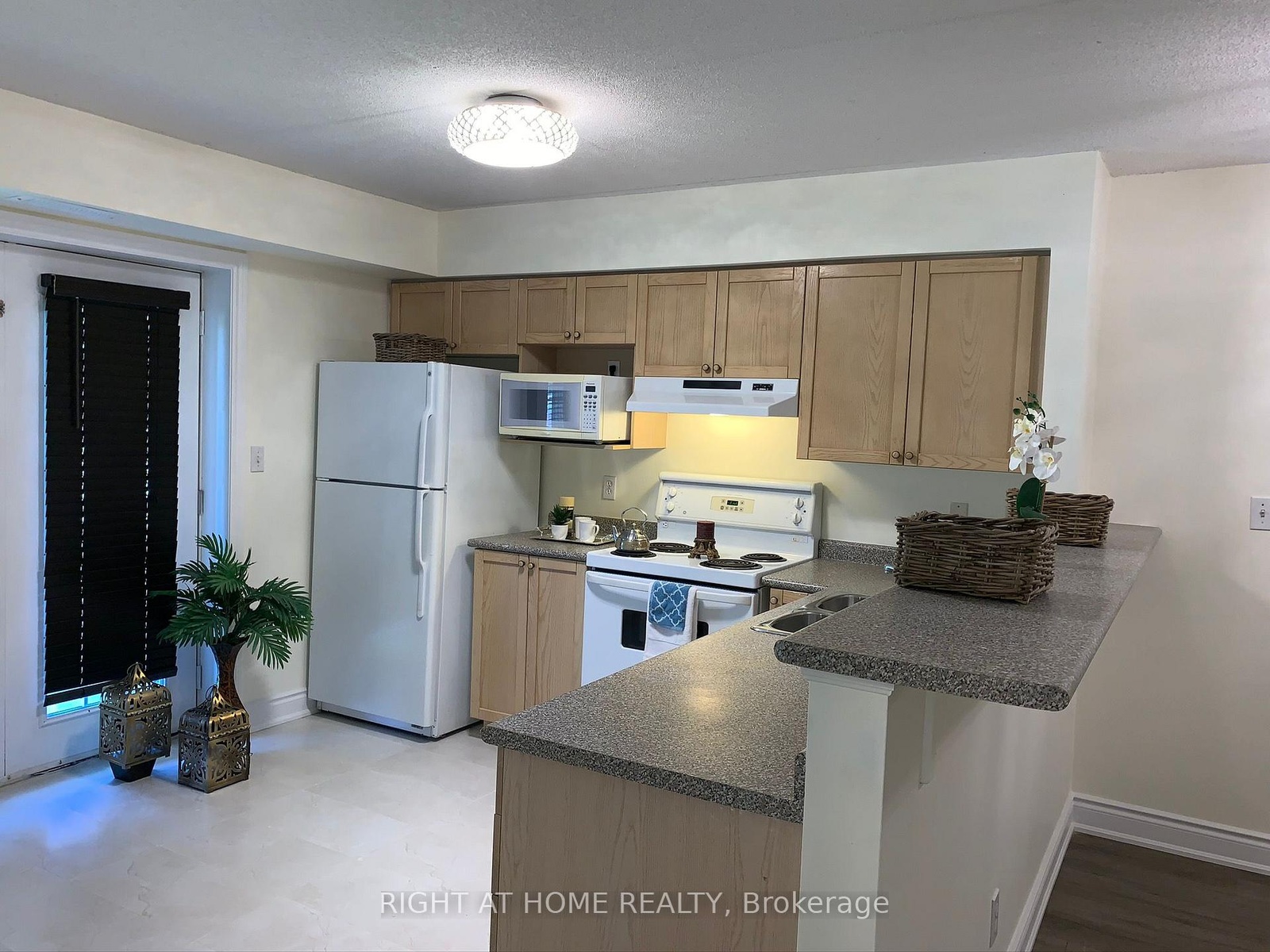 Welcome to this bright and spacious 905 sq ft ground level condo with garden backyard in the heart of South Glen Abbey, Oakville. This ground level modern one-bedroom plus den unit as second bedroom boasts an open-concept layout. The condo has 1 underground parking garage and 1 locker storage. The condo has access from the kitchen to beautiful backyard garden. The Condo featuring sleek laminate flooring throughout, this home is perfect for professionals, couples, or small families seeking comfort and style. Generous 905 sq ft of living space with a versatile den, ideal for a home office or guest. Open-concept living and dining area, perfect for entertaining. Contemporary design with laminate flooring and abundant natural light. East-facing orientation for beautiful sunrises. Building Amenities: Fully equipped gym, elegant party room for hosting events, relaxing sauna for ultimate convenience. Nestled in the prestigious Glen Abbey neighbourhood, known for its top-rated school district, steps to lush parks, trendy restaurants, and boutique shops, easy access to major highways and public transit for seamless commuting, live in a vibrant community with everything at your doorstep! Don't miss this opportunity to lease a modern, move-in-ready condo in one of Oakville's most desirable areas. Schedule your viewing today!