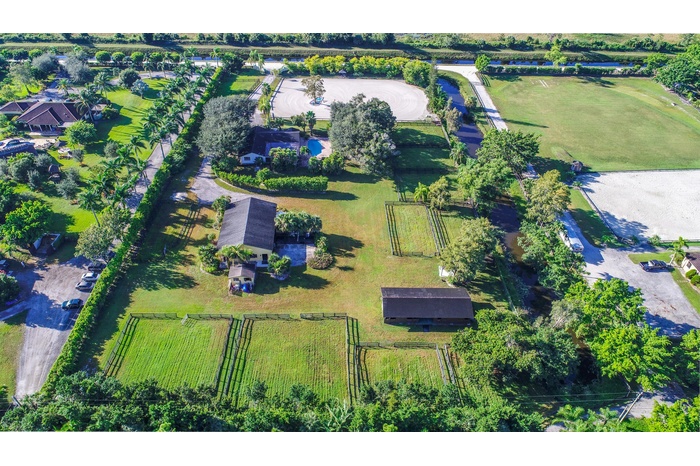 Very private 5 acre property. 6 bedroom, 3 bath furnished house with private pool.Equestrian amenities include 220' x 180' ring.Two barns with 8 stalls each, and ample room for temporary stalls. 4 wash stalls attached to first barn, tack room, feed shed, 10 large paddocks. Maintenance machinery on site.