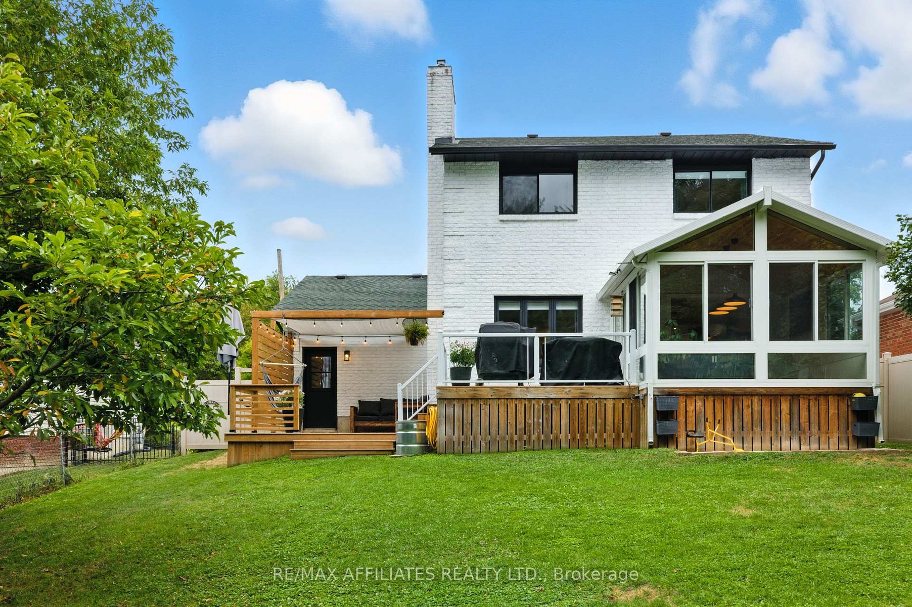This stunning white all-brick 2-storey home with timeless black accents blends contemporary upgrades with timeless charm. Located in Brockville's sought-after southwest end, you will enjoy a peaceful neighbourhood just steps from the Brockville Country Clubs 18-hole golf course, scenic St. Lawrence Park, and the city's vibrant downtown shops, dining, and waterfront. The bright, open-concept living and dining space is anchored by a cozy natural gas fireplace, setting the perfect mood for relaxed evenings or lively gatherings. The chef-inspired kitchen is a showstopper, with a central island and breakfast bar, a dual-fuel gas/electric range with a double oven, dishwasher, and fridge everything you need to whip up culinary magic.The homes 4-season heated solarium is the ultimate bonus space whether its coffee with sunrise views or cozy winter nights under the stars and it opens directly onto a backyard deck made for entertaining. A stylish 2-piece powder room rounds out the main floor. Upstairs, the primary suite feels like your private retreat, complete with a walk-in closet and a sleek ensuite with a spa-worthy shower. Two additional bedrooms and a 4-piece bath with a jetted tub offer comfort and flexibility for family or guests. Need more space? The finished basement delivers perfect for a family room, home office, or gym. Outside, pride of ownership shines. The fully landscaped backyard is your personal oasis, with brick patios, walkways, and new 6-ft PVC fencing creating a private, low-maintenance retreat. With numerous updates, including new patio and deck (2023), fresh landscaping and walkway (2023), 8x16 shed/lean-to (2024), finished basement, updated stairs (2025), fresh paint (2025), bathroom reno's (2024/2025), plus a roof (~10 yrs) and furnace (2013) this home is as turnkey as they come.This isn't just another house this is the home that changes everything. The only question is: will you be the one to call it yours?