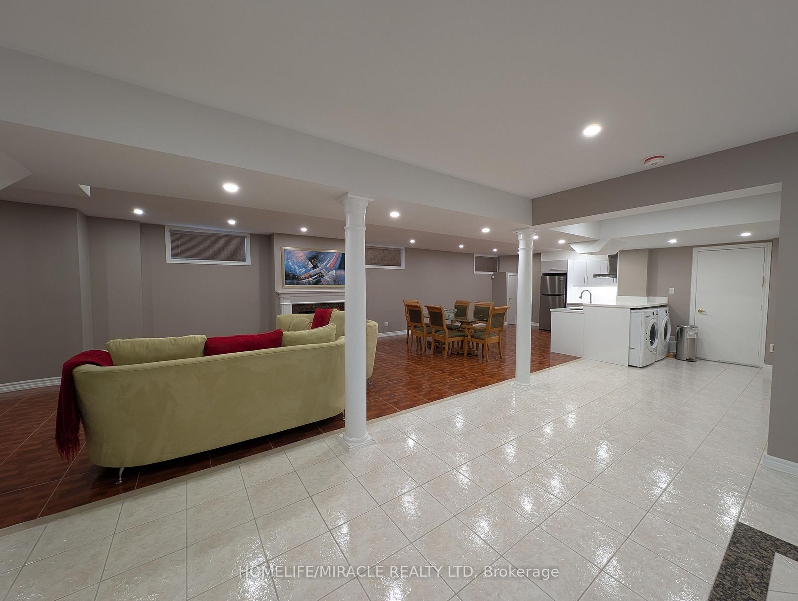 Discover this exceptionally spacious and beautifully finished basement apartment, offering an incredible 1,300 square feet of comfortable living space. Nestled within a quiet, family-friendly Vaughan neighborhood, this home provides the perfect setting. The expansive open-concept layout seamlessly combines a huge living room, family room, and dining area, all anchored by a cozy gas fireplace. This unit features two generously sized bedrooms, both boasting large walk-in closets. The brand new modern kitchen is outfitted with new appliances, and for ultimate convenience, the apartment includes a private in-suite washer and dryer. You'll be just moments away from beautiful parks, shopping centers, public transit, and major highways, offering a perfect blend of peaceful residential living and urban accessibility. This is not your typical basement apartment; it's a complete lifestyle package waiting for you to call home. For your convenience, this unit can be provided fully furnished at an additional cost.