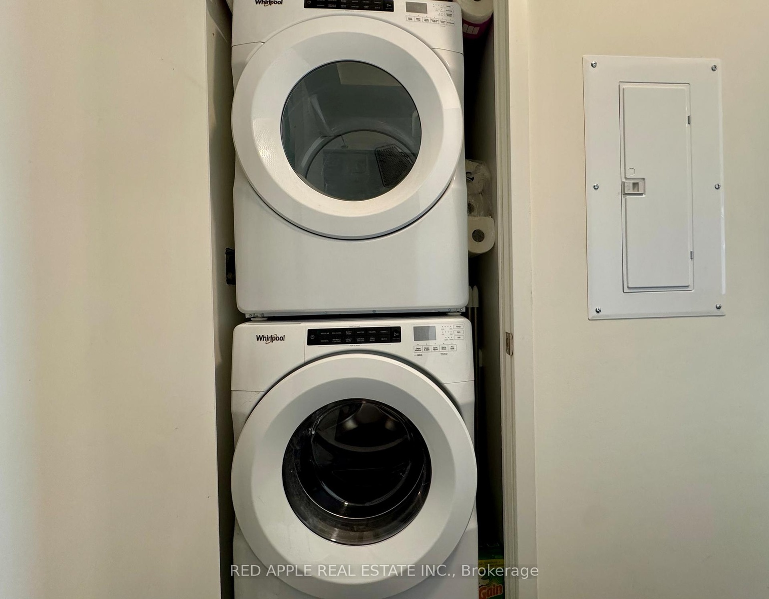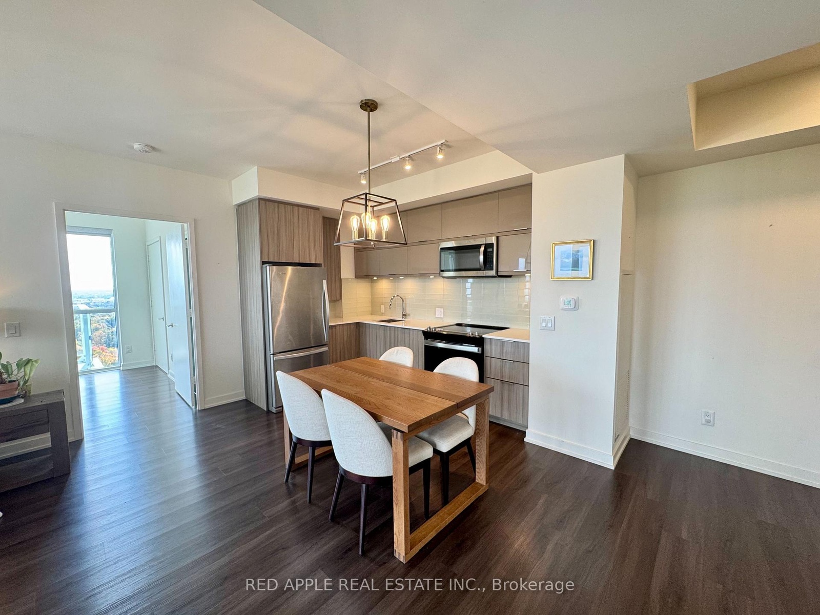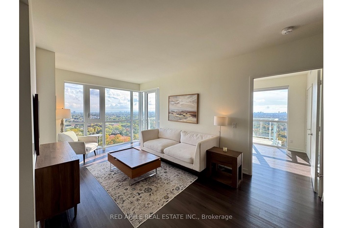 Your Dream City Lifestyle Starts Here! Experience elevated urban living in this stunning, fully upgraded two-bedroom, two-bathroom condo. Step into a spectacular open-concept living space bathed in natural light, offering breathtaking cityscape views the perfect backdrop for entertaining or unwinding. Enjoy a chef-inspired kitchen featuring sleek under-cabinet lighting, an integrated dishwasher, and high-end upgrades. Both bathrooms have been beautifully renovated for a spa-like experience. Convenience is key with an in-suite, full-size front-load washer and dryer and your dedicated parking spot included. The unit boasts a large private balcony with a convenient walk-out from the primary bedroom, making it your personal outdoor oasis. Commuting is a breeze with easy access to the DVP and 401. You're also just steps away from groceries and top-rated schools. It's the perfect blend of luxury and location!