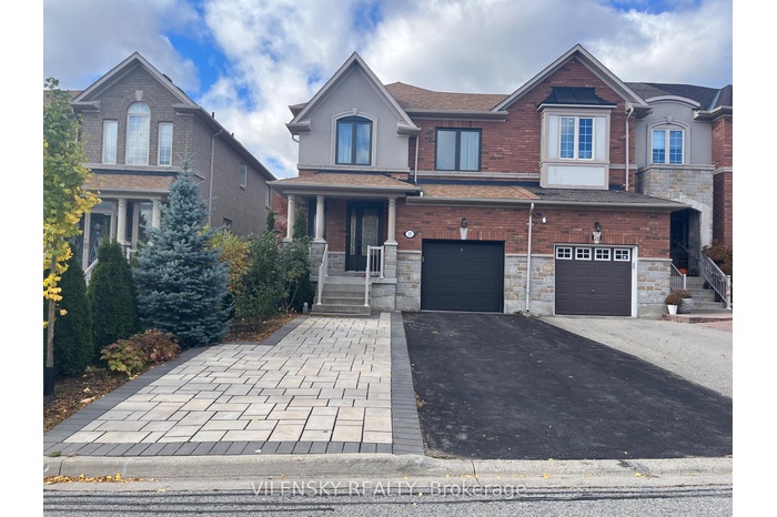 REEHOLD End Unit Home Nestled In Highly Sought-After Thornhill Woods. Hardwood floor throughout the house, open concept living and kitchen area, spacious family room with ample of natural lights. Impeccably Maintained With Lots Of Upgrades.9 ft ceiling ,granite counter tops, tiled backsplash. Professionally Finished Basement With engineered flooring and modern style tiled laundry. Perfect neighborhood, close to all commute points ,3 min walk to Dufferin VIVA Bus and TTC bus. Walking distance to community center and library. Tons of renovation done recently, including but not limited as, New Roof 2022, new winterized garage doors 2021,custom front doors 2021(both panes open), upgraded new windows 2022 and custom rear doors to backyard 2022.