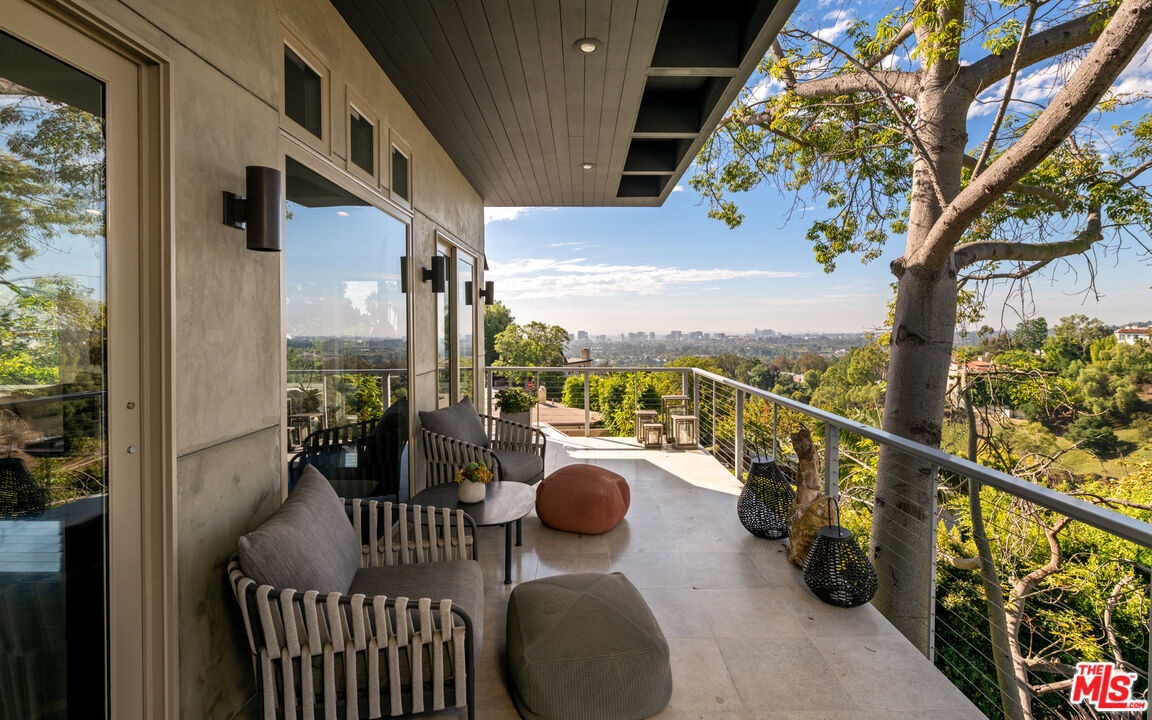 Set in a tranquil Beverly Hills PO location, this contemporary architectural masterpiece combines privacy, comfort, and stunning views of the ocean, Catalina Island, sparkling city lights, and the Getty Museum all while remaining easily accessible. Perched just above the city on a coveted street-to-street lot, the home offers seamless indoor-outdoor living with expansive balconies, lush gardens, and space for an infinity-edge pool or private ADU with its own entrance. Walls of glass, skylights, and floor-to-ceiling windows flood the interiors with natural light. The grand living room is perfect for entertaining, while the open-concept chef's kitchen features a 9' x 4' island, Bisazza glass tile backsplash, Cesar stone countertops, and top-tier stainless steel appliances.The luxurious primary suite includes a spa-like bath with steam shower and custom walk-in closet, complemented by three additional en-suite bedrooms, including a private guest suite with separate entrance. Offering prestige, privacy, and unmatched views without being far above the city, this estate delivers the ultimate Beverly Hills lifestyle.