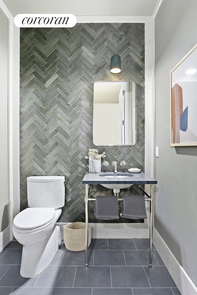 The primary suite enjoys harbor and skyline views, along with two closets and a luxurious marble bath featuring a freestanding soaking tub, glass-enclosed shower, radiant heated flooring, and custom double vanity. Two additional bedrooms share a large secondary bath, and a chic powder room is perfectly positioned for guests. Thoughtful details include central heating and cooling, an in-unit washer/dryer, as well as a private storage unit.