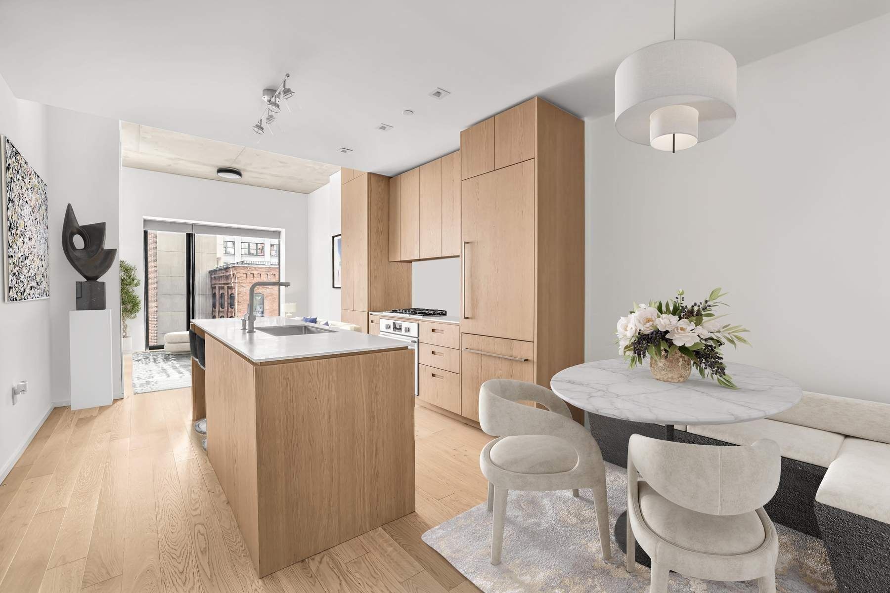 Welcome to Residence 7Q, a rare gem in a modern, LEED-certified development in the heart of DUMBO. This beautifully designed two-bedroom, two-bathroom loft with a private terrace. Bathed in western light, this home overlooks a lush, landscaped garden and the charming brick landmark buildings that define DUMBO’s true character.