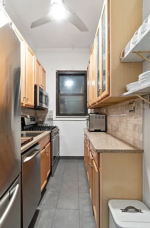 Welcome to Apt 5B at 320 East 86th Street, a charming 2-bedroom, 1-bathroom residence in the desirable Yorkville neighborhood. This home boasts 900 square feet of living space on the fifth floor of a boutique condop built in 1925. The unit features pre-war detailing, including exposed brick walls, decorative moldings, and extra tall ceilings. The spacious living room seamlessly connects to a dining area, perfect for entertaining. The windowed kitchen is equipped with stainless-steel appliances, wood cabinetry, and a Silestone countertop. Both bedrooms are enhanced with ample closet space and custom-built ins, providing functionality and style. The bathroom includes a window for natural light. The building offers desirable amenities such as an elevator and a roof deck with stunning city views.