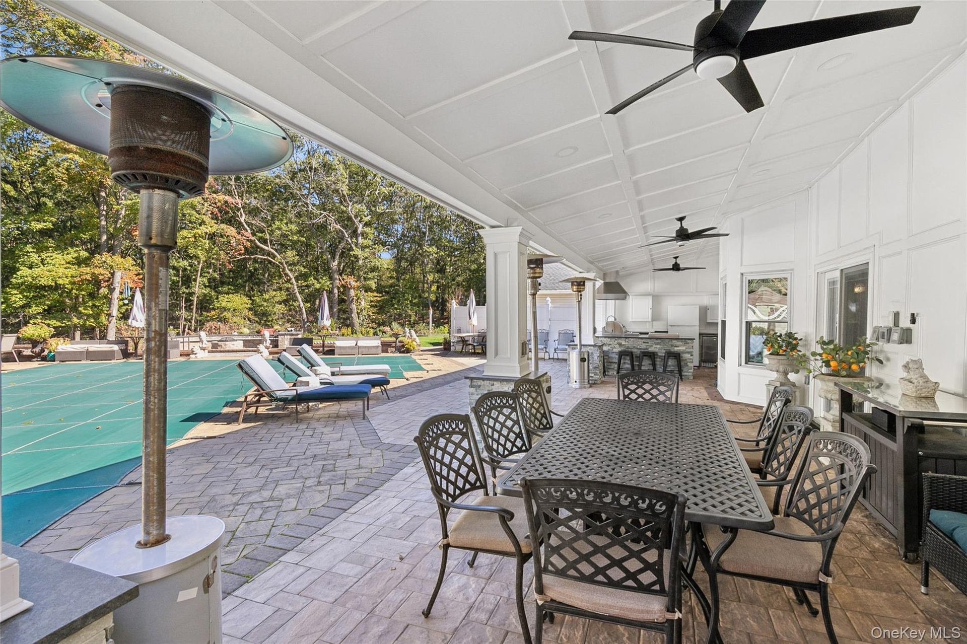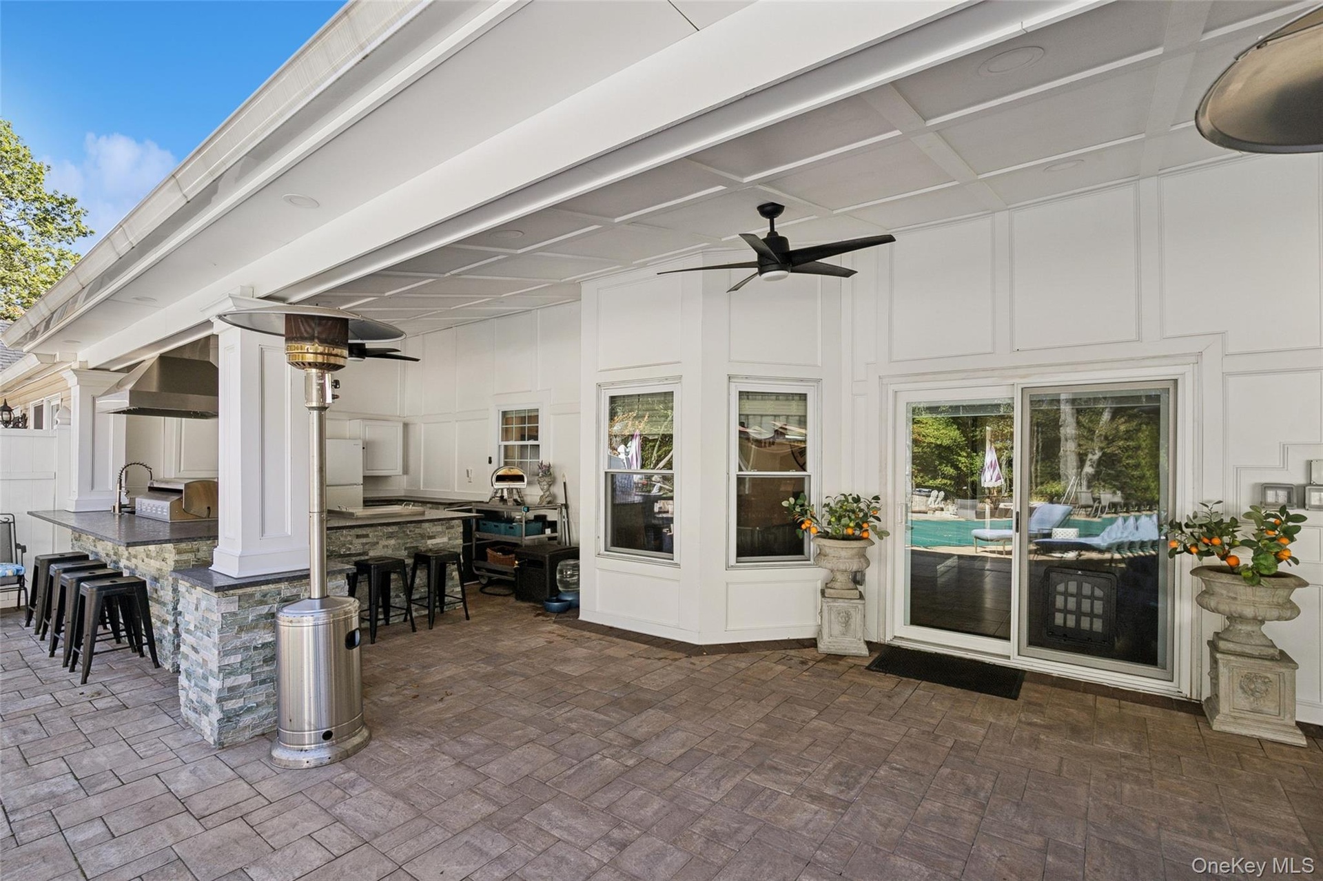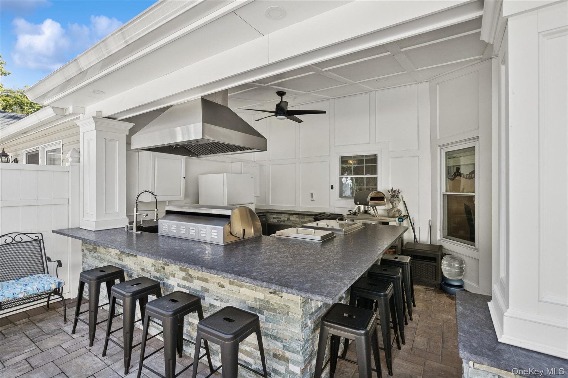 open to its own private backyard-perfect for guests, extended family, or rental income. The fully fenced, resort-inspired backyard includes a bocce court, stone fire pit, and a fully equipped outdoor kitchen with a BBQ grill, warming stove top, hibachi grill, ice maker, and full-size refrigerator. The entire yard is surrounded by a deer fence for privacy and security. Additional highlights include a two-car garage with a wide driveway that accommodates up to six additional cars and a boat, a two-year-old roof, a new three-unit air conditioning system, a new boiler, Nest thermostat, central vacuum, security system, an outdoor shed, and plenty of bonus space for pool equipment, a motorcycle, lawn tools, and more. There are also plenty of
