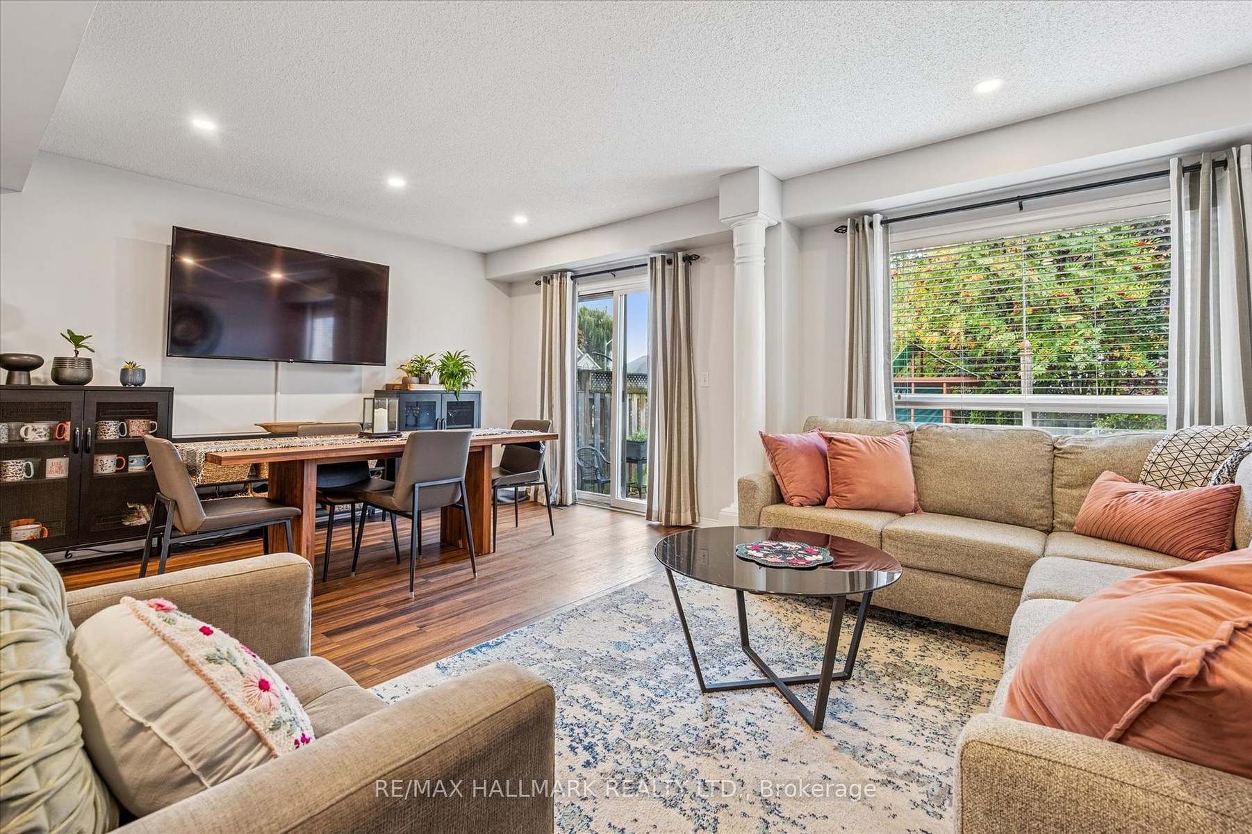 Discover this beautiful 3-bedroom family home nestled in a wonderful,family-friendly neighbourhood Youll be greeted by great curb appeal, featuringlush, well-kept gardens that create a welcoming first impression.Step inside to a bright, open-concept main floor, accented with decorative columns. The spacious kitchen offers ample cabinetry and comes fully equipped with abuilt-in dishwasher, microwave, fridge, and stove perfect for family meals andentertaining.The dining area and living room flow seamlessly and open onto a private patio,ideal for summer BBQs or relaxing outdoors. A convenient main-floor 2-piecebathroom adds extra comfort for guests.Upstairs, youll find three generousbedrooms that are bright and filled with natural sunlight. Including a largeprimary bedroom with double closets. The 4-piece main bathroom features a full tubsurround, providing both style and function. The finished basement offers a largerec room, a 2-piece bath, and a spacious utility/laundry room with plenty ofstorage. Enjoy the outdoors in your fully fenced private yard a safe, peacefulspace for kids, pets, and family gatherings.This warm, inviting home combines comfort, convenience, and charm everything yourfamily has been looking for! including easy access to shopping and 401 commutes