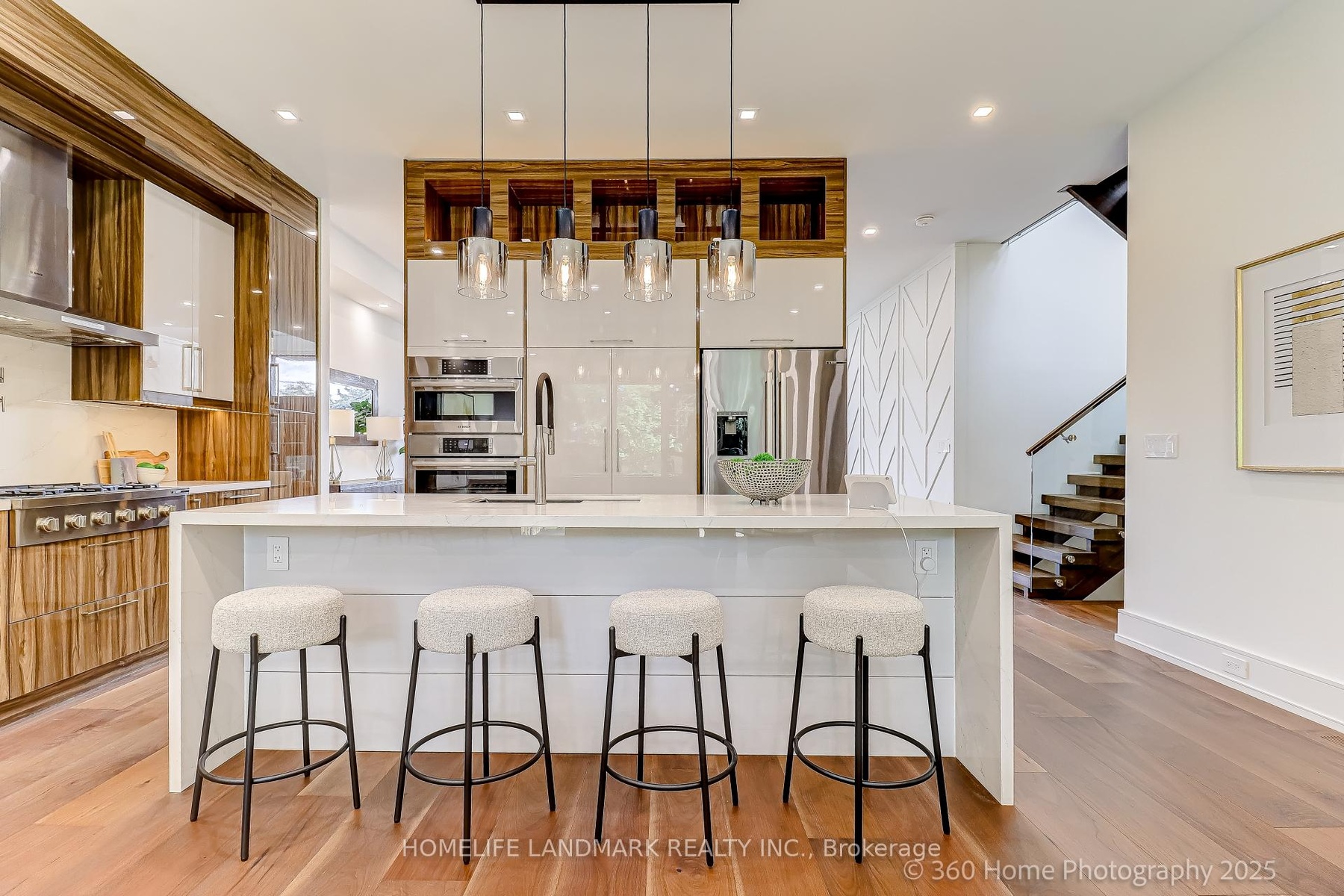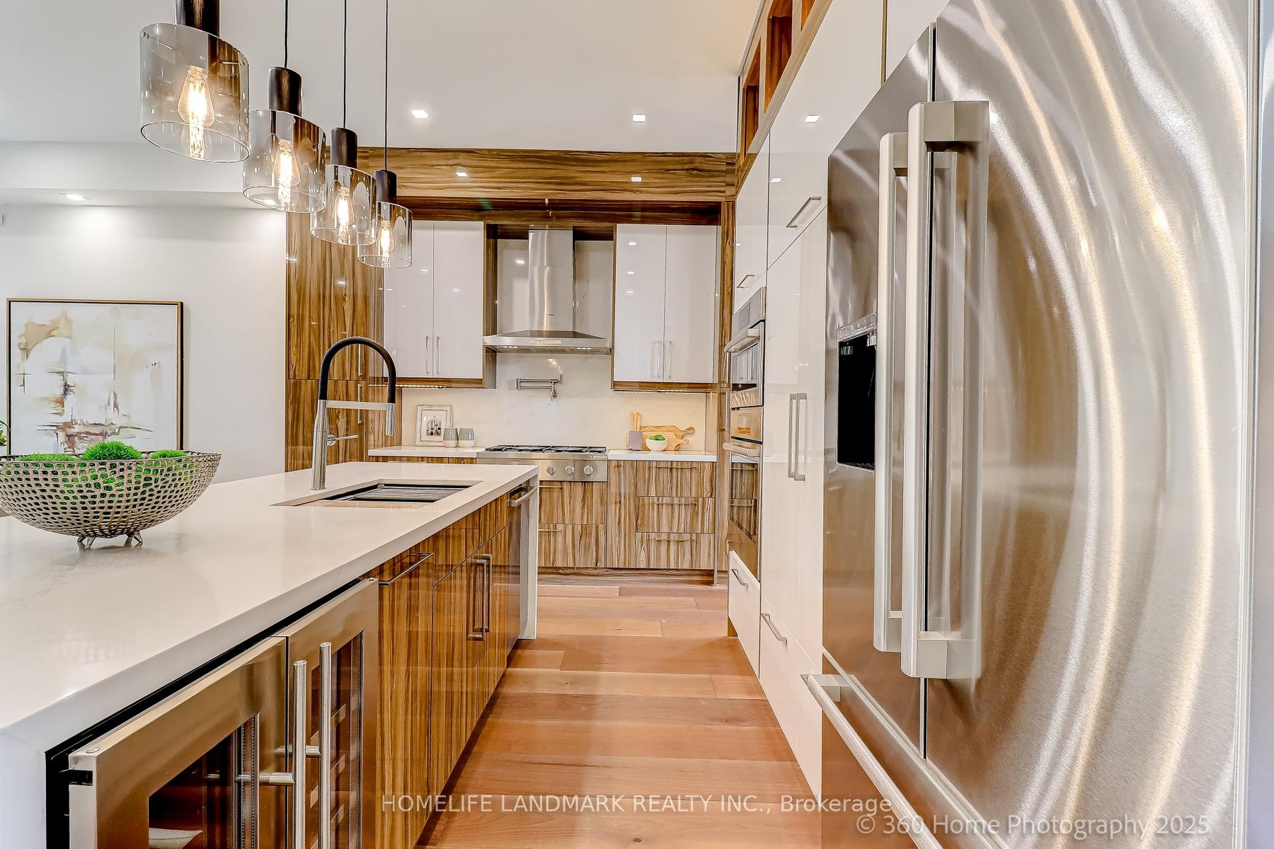 Step into contemporary elegance with this stunning home, boasting a sleek modern exterior. This property offers not only style and functionality but also an unbeatable location for families, in one of the city's most sought-after school catchment areas with over 3,500 square feet of finished living space. This home includes a total of six bedrooms and five bathrooms. The walkout basement adds exceptional versatility, featuring a fully equipped second kitchen, two additional bedrooms, a 3-piece washroom, separate laundry and storage areas, and a spacious recreation room. This self-contained apartment-style layout is ideal for an extended family or guests. The heart of the home is a spacious, chef-inspired kitchen featuring high-end, Wi-Fi-controlled appliances, a generous island perfect for entertaining, and gleaming quartz countertops. The main floor also includes a welcoming family room with direct access to an ample deck that overlooks the backyard, ideal for relaxing or hosting guests. Upstairs, the luxurious primary bedroom offers a walk-in closet, a lavish 7-piece en-suite bathroom complete with a free-standing Jacuzzi, and a private balcony with glass railings. Each of the four bedrooms includes a three or four-piece bathroom and ample storage, ensuring comfort and convenience for every member of the household. Inside, the property is outfitted with smart technology throughout, including Google Home-compatible fixtures, speakers, smart lighting control, smart toilets, and smart security cameras. A fully fenced backyard for added privacy and peace of mind completes the picture of a home designed for modern living with comfort, security, and sophistication.