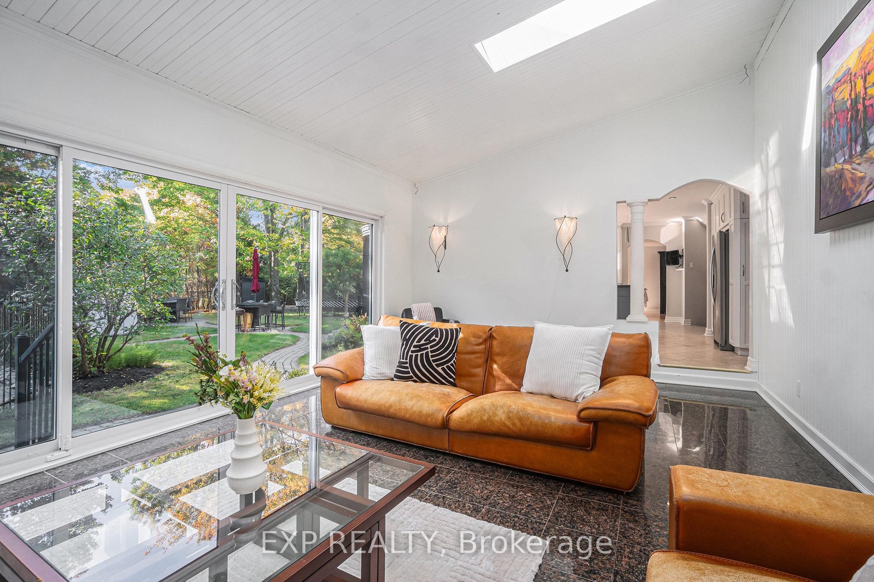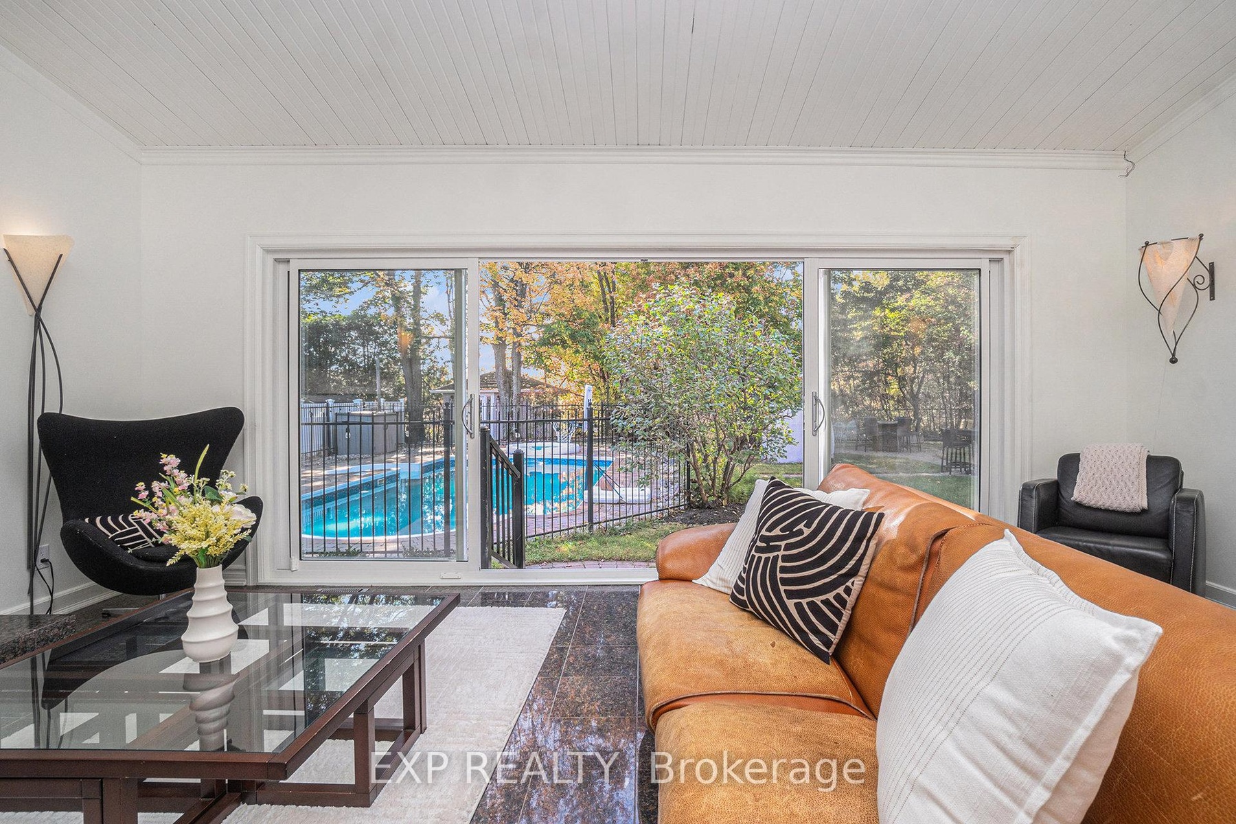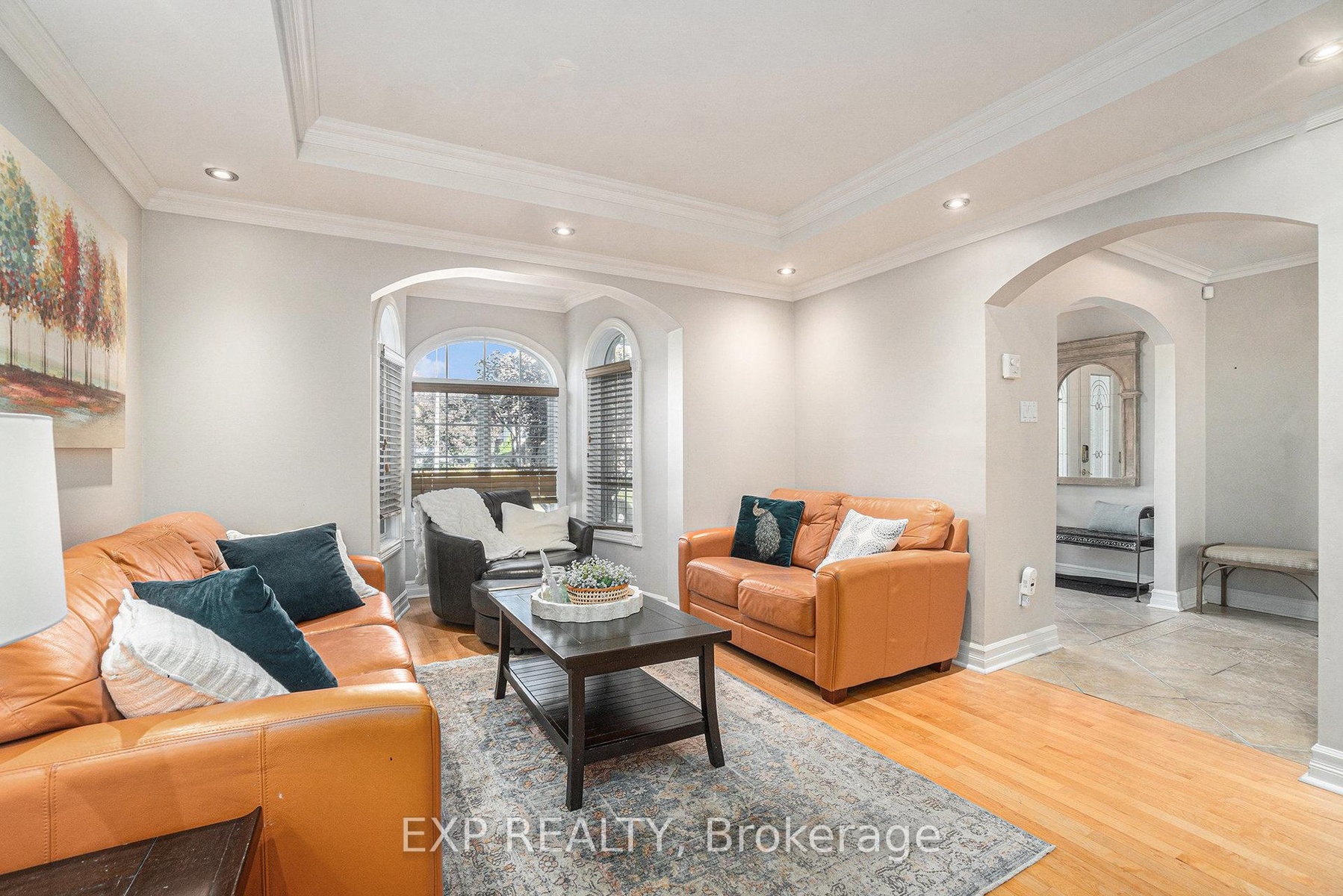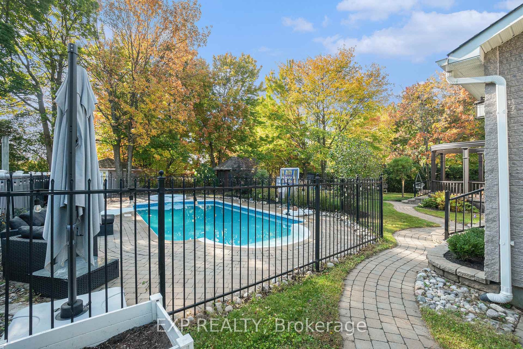 OPEN HOUSE OCTOBER 19 @ 2:00 - 4:00. YOUR CASTLE AWAITS! Welcome to 150 Topaze Avenue in Navan, a magnificent 5-bedroom home (4+1) situated on a serene 93' by 150' lot backing onto greenspace and only minutes from shopping, schools, parks and Orleans. Extensive landscaping greets you from the driveway to the sides of the home and into the fully fenced backyard where you will find a 28' by 16' heated inground pool and hot tub, fully serviced gazebo and sheds, perennial gardens, mature trees, night lighting, rounded deck and plenty of extra space for the Family. Expansive main floor boasts a separate foyer, dramatic center staircase, crown moulding throughout, an OFFICE/DEN with pot lights, large living room and dining room (both with coffered ceilings and pot lights), HUGE eat-in kitchen with newly painted cabinets, pot lights, granite counters, center island, stainless appliances and access to the deck, a powder room and a STUNNING 4-season sunroom with vaulted ceiling, 3 skylights, a cozy gas fireplace and wall to wall patio doors overlooking the pool and gardens. Upper level has hardwood and crown moulding throughout, 4 good sized bedrooms including a primary with a walk-in-closet and spa-like ensuite with soaker tub and separate shower. Fully finished lower level is perfect for entertaining with a Family room, wet bar with seating for four, the 5th bedroom with walk-in-closet, a separate room with cedar closet (playroom or gym?), 3-piece bathroom with oversized shower, laundry room and plenty of storage. This home shines from top to bottom and is truly unique with its balance between architecture and nature! Upgrades over the last few years include furnace, air conditioner, tankless hot water, patio doors, some windows, kitchen painting, landscaping, inground sprinkler system and more. 48 hours irrevocable on all offers as per Form 244. SEE PROPERTY WEBSITE FOR MORE DETAILS AND SUMMER PHOTOS.