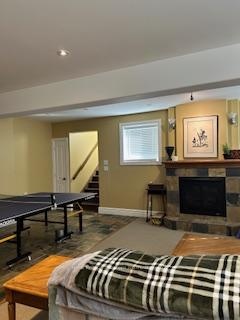 4 Month, SKI SEASON RENTAL! Leave the car!!! Shuttle or walk to all the fun at Blue Mountain, this large beautiful chalet is available for the 4 month winter season, Fully Furnished, Spacious 6 bdrm exec home, 5+1/2 bathrooms in Historic Snowbridge. Plenty of room to spread out in this well crafted chalet, features great room, living room & lower level family/games room. 2 generous sized master bedrooms, each w ensuites w jetted tubs, addt' 4 piece washroom on 2nd level, shared w 2 addt' bedrooms. Natual light flows into main floor great room lined with windows & w Cathedral ceiling & huge Fireplace, faces out to the south end of Blue, w walkout to covered deck w/ BBQ. Welcoming front entry w addt' living room, use of Hardwood & tile floors, in-floor heating in basement & baths, & kitchen. Gourmet kitchen with large dining area (seating for 10) inside entry from 2-car garage. Central a/c, forced air gas heat, gas fireplaces, finished basement w sep family rm/games room with walk out, add't 4 piece bath & 2 bedrooms. Tenant to supply own linens/towels. . Bed sizes: 2 KING, 2 Q, 4 TWINS. Monthly rental rate, (flex start/finish date) Dec. 1 to March 31. Driveway snow removal included in rental rate. Utilities (gas, hydro, water/sewer, hot water tank rental, internet, cable) are on top of rental amount, approx cost $500/mth. Security/utilities deposit $5,000 for utilities, final cleaning and damage (partly refundable after reconciliation of utilities and if no damage) held in Trust and reconciled at end of Lease. Tenant MUST provide a permanent residence address other than subject property. No smoking of any substance allowed inside the home. Small non-allergenic dog considered (no cats).No use permitted of this chalet for AirBnB type rentals.
