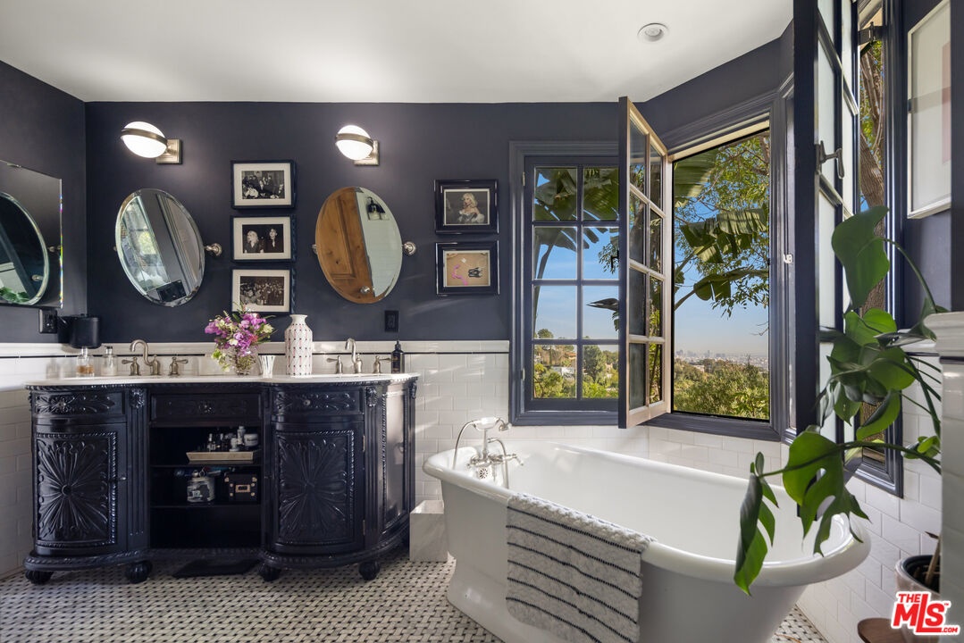 Peacefully tucked amidst the treetops of Beachwood Canyon, this fully furnished 1920s French Normandy chateau is a luxurious retreat where Old Hollywood charm meets modern sophistication! With breathtaking views of the Hollywood Sign, Griffith Observatory, and the iconic Los Angeles skyline, this secluded oasis offers an unparalleled experience in the Hollywood Hills. Step through the arched entryway and be transported to a world of eleganceexquisite walnut millwork, soaring truss ceilings, and abundant windows bathe the home in natural light. Cathedral ceilings tower over the living room's stone fireplace and scenic French doors, opening to a picturesque deck that set the stage for unforgettable evenings under the stars. A designer chandelier lends a relaxing mood for intimate gatherings in the dining area. Crafted for the avid cook, the gorgeous kitchen features premium appliances, custom cabinetry, a distinctive backsplash, and gleaming marble countertops. Three generous bedrooms invite you to unwind after a long day, the grandest of which is the primary suite with its exclusive balcony, walk-in closet, and opulent ensuite. Multi-level outdoor seating areas, a covered fitness alcove, and lush greenery make this home an entertainer's dream. Notables include the versatile loft with a separate entry, kitchenette, and a long, gated driveway offering ample parking. Its elevated location makes this sanctuary feel remote despite being only moments from the heart of LA. House is offered fully furnished and available for rent 1/8/2026