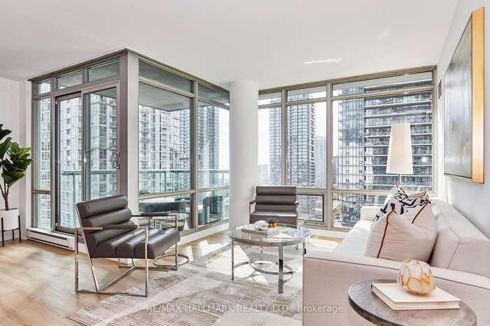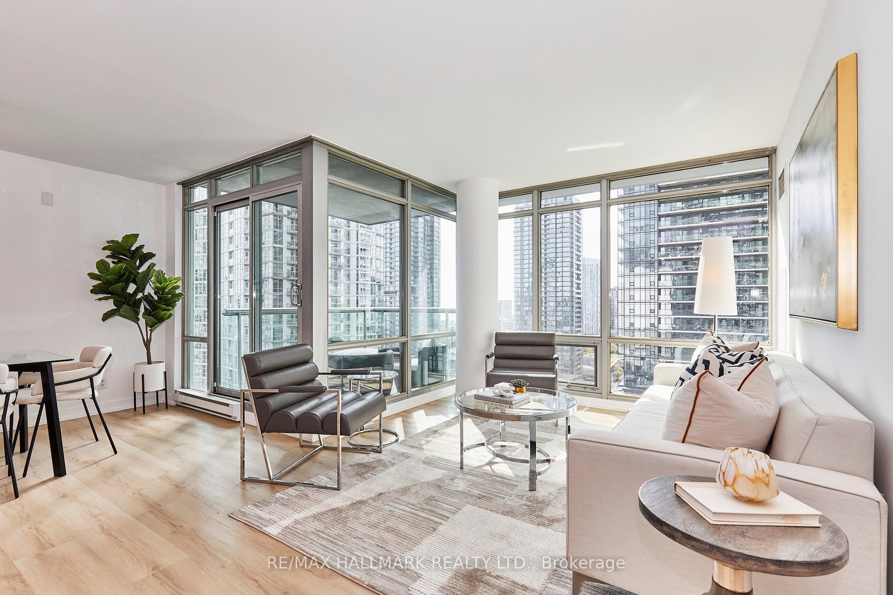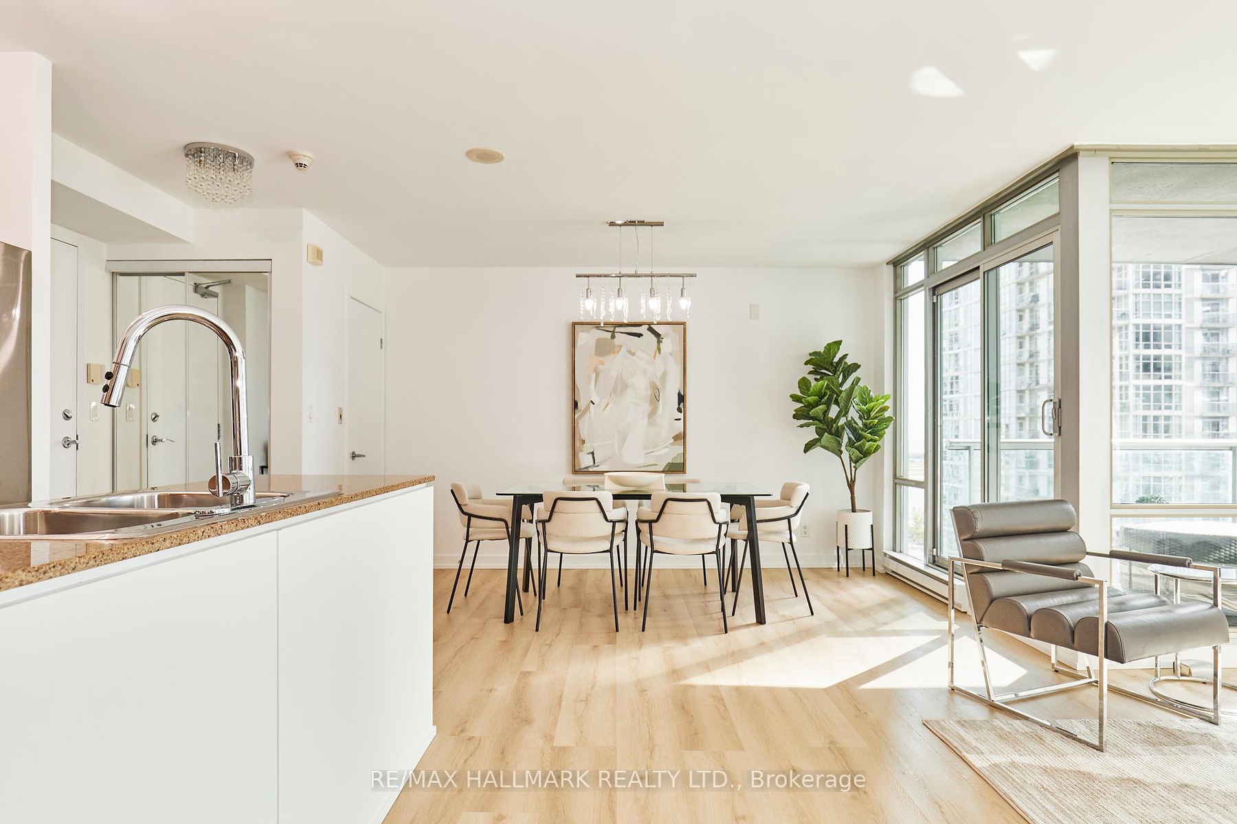 The Best View in The City ? Just renovated Bright Corner 1 bedroom plus a Den unit, Floor to ceiling Windows, Gorgeous Views of the Lake with this South West exposure, Brand new Stainless Steel appliances, Freshly Painted, Floor is brand new, Fabulous Unit, Best layout in the building. Easy to make a second bedroom out of the den, just add a door, Come with a parking Spot, Heart of the City Living..step into this spacious sun drenched condo suite where elegance meets unbeatable convenience. This Layout seemlessly blends the living room dining room and kitchen areas creating the perfect space for entertaining or relaxing ..Amenities..Indoor pool, jacuzzi, saunas, Gym,theatre, guest suites, party room, garden, BBQ area, 24 hour concierge, ample visitor parking...Heart of Downtown