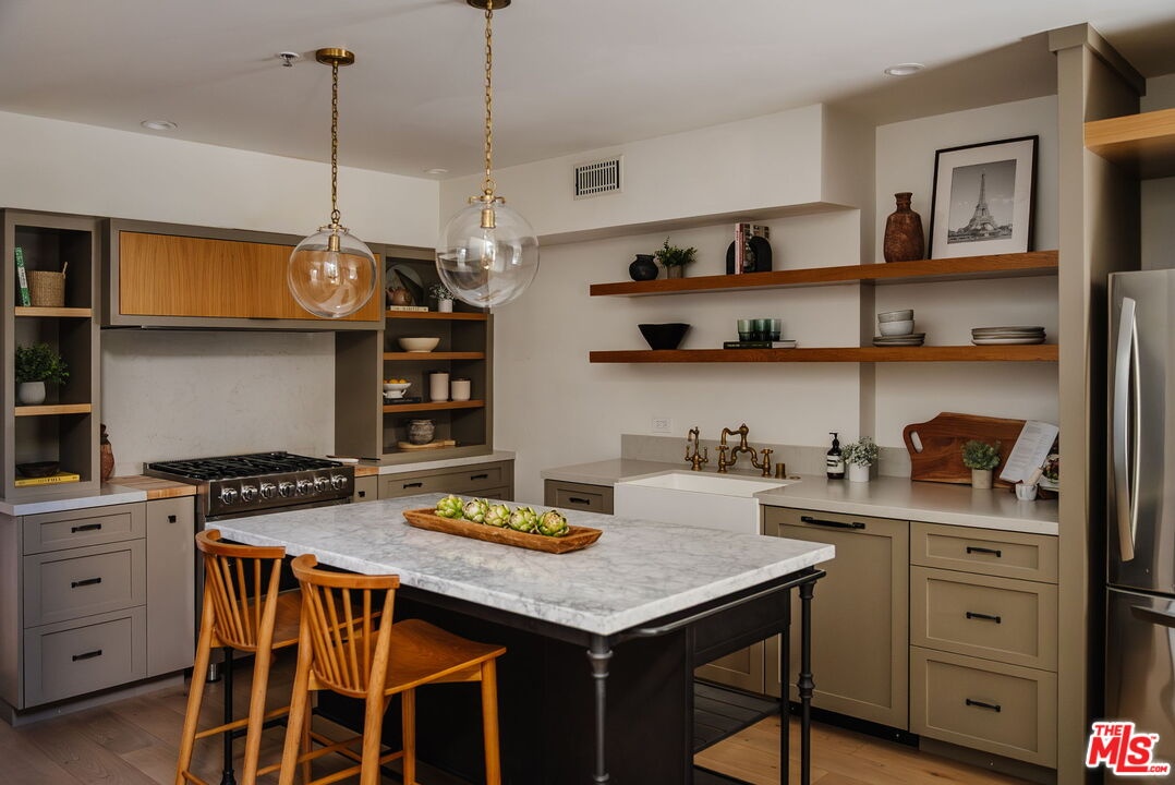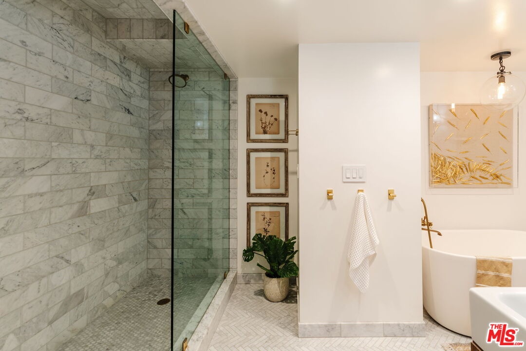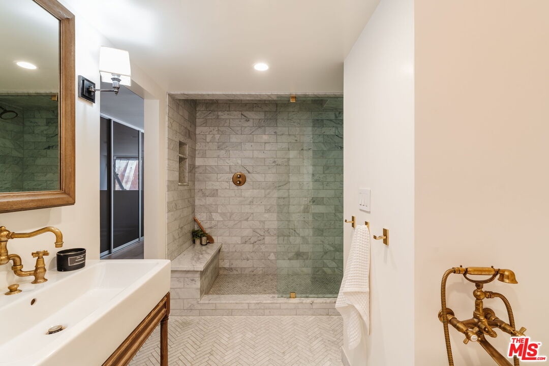 Welcome to the Westside's premier live/work residence, perfectly situated on Main Street-one of the main arteries connecting Venice and Santa Monica. This completely upgraded 2BD, 1,860 SF loft showcases designer touches throughout, featuring unlacquered brass faucets from Waterworks and Newport Brass, marble counters, Kelly Wearstler lighting, and custom linen curtains hung from 20-foot vaulted ceilings. As you enter, you'll feel the warmth of the French oak floors and the inviting kitchen, designed for entertaining. The kitchen features a new Viking range, marble, custom-painted cabinets, and brass fixtures. Beyond the kitchen, you'll find an upgraded powder room and a custom-built office that can easily double as a third bedroom, if needed. The spacious living and dining area is drenched in natural light from the vaulted ceilings and wall of glassthe true heart of the home. Just off the living space, a private patio offers plenty of room for lounging or al fresco dining. The second level showcases a grand primary suite with expansive custom closets and a spa-inspired ensuite featuring dual vanities, a marble and glass walk-in shower, a Japanese soaking tub, and a private water closet. The second bedroom includes a custom solid oak built-in closet and an elegant ensuite with designer wallpaper, creating a serene retreat for guests or family. Secure, gated side-by-side parking for two cars, additional storage, and convenient guest parking enhance the home's effortless livability-all just a short walk from the beach, Abbot Kinney, Rose Avenue, and many of the Westside's premier attractions.
