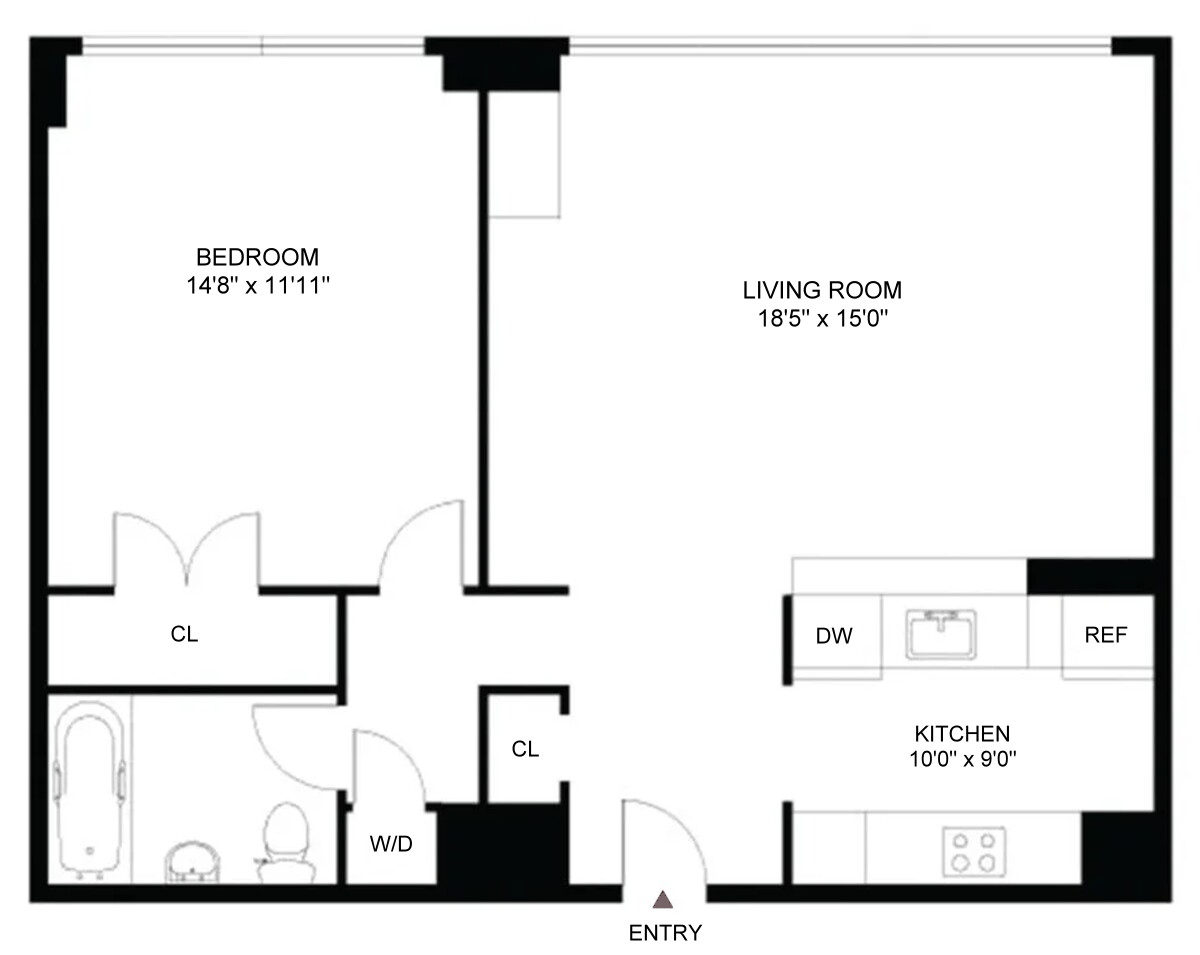 Spacious and bright one-bedroom in this luxury white glove full service condo building. The west-facing floor-to-ceiling windows with 9' ceilings illuminate the space with amazing natural light.