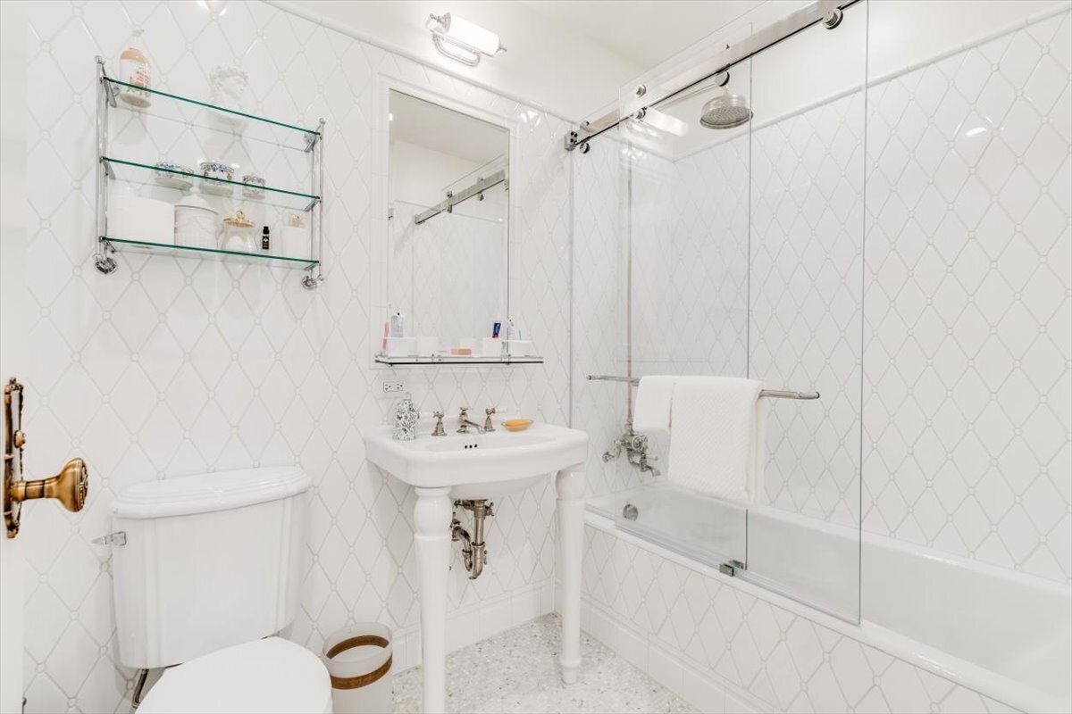 The oversized spa bath is a sanctuary, complete with Kohler and Lefroy Brooks fixtures bearing The Plaza’s signature “Double P” insignia. Throughout the home, you’ll find thoughtful details like two Juliet balconies, custom closets including two walk-ins, a Bosch washer and dryer, Lutron lighting, and automated shades for comfort and privacy.