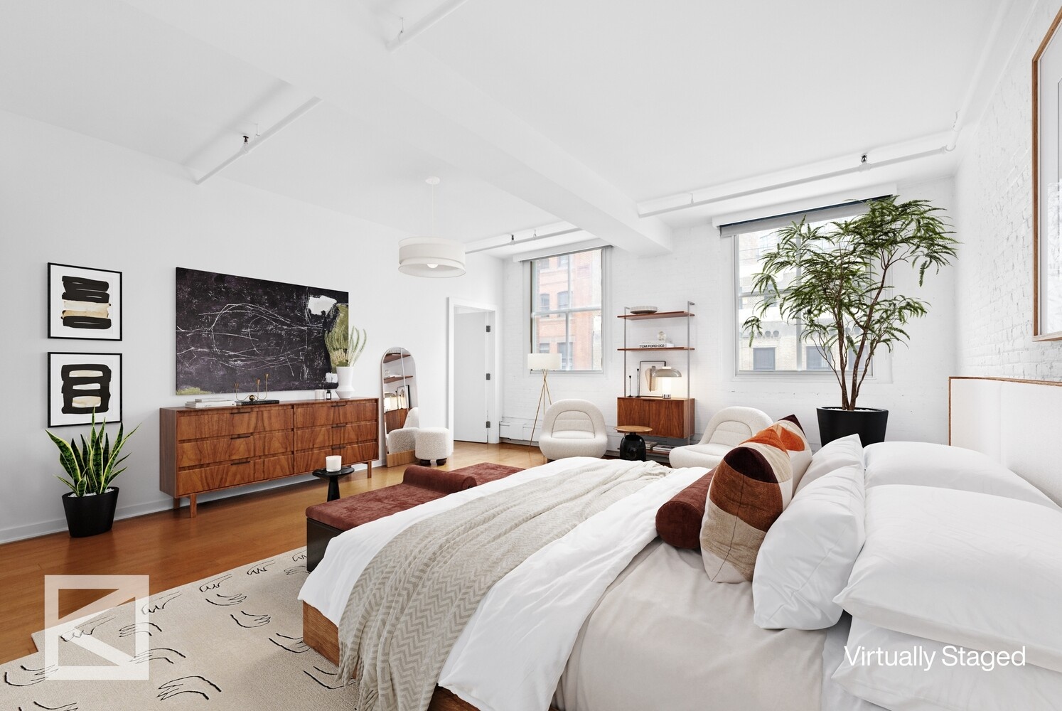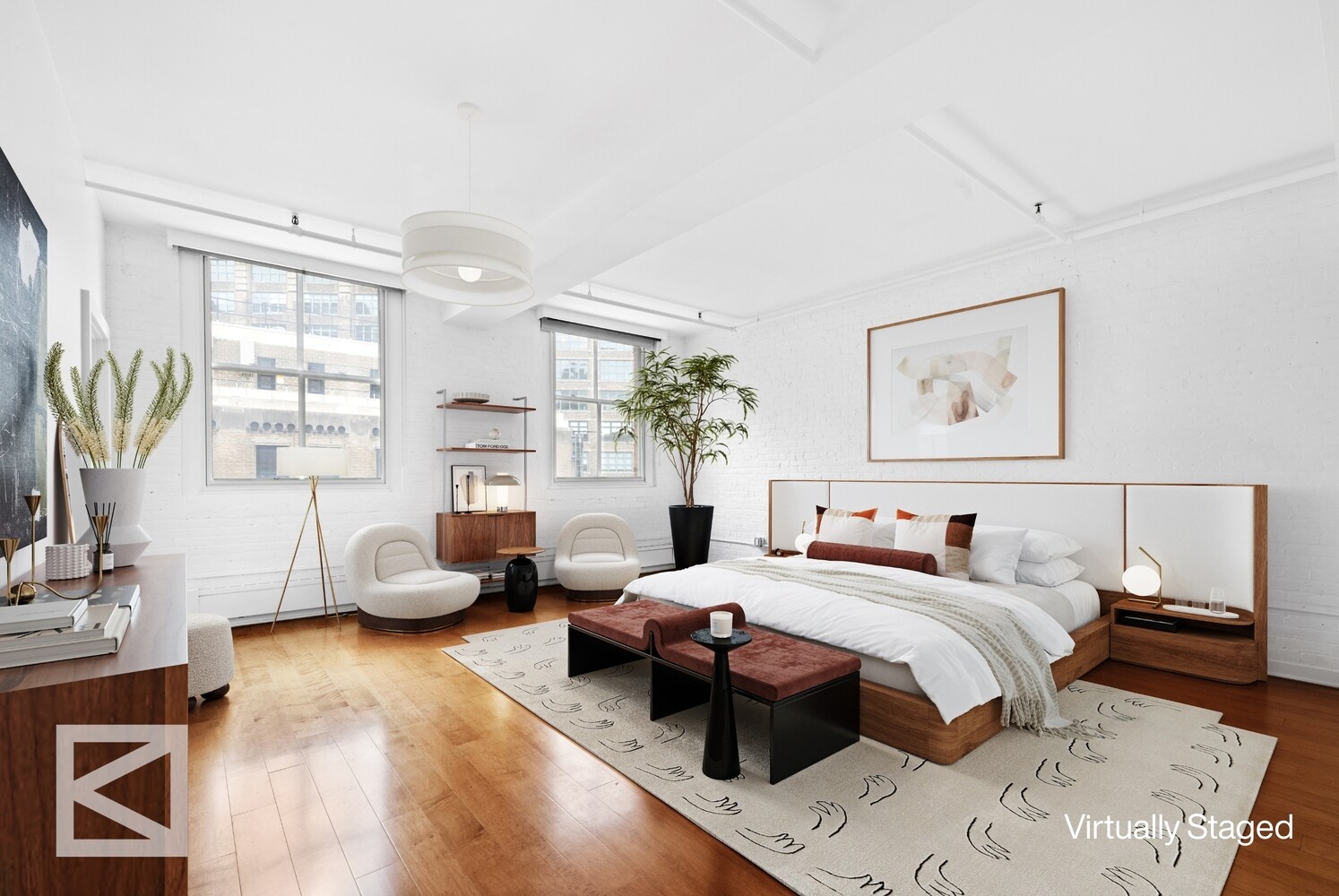 Situated in the prized Tribeca neighborhood, this trophy property is one of only 32 lofts available at the Cobblestone Loft Condominium, making it a rare find. Upon entering, you'll be welcomed into a magnificently sized loft featuring an expansive great room designed to be the ultimate space for entertaining, measuring approximately 40 feet by 30 feet.