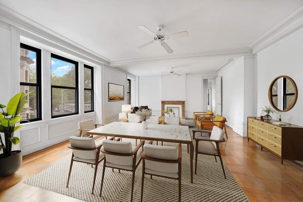 Classic in appearance and character, with 6-foot windows in every room, near 10-foot ceilings, and inlaid mahogany-accented oak hardwood floors throughout, this sprawling 2,200+/- sf prewar gem represents both a storied past and a unique chance to personalize your future.