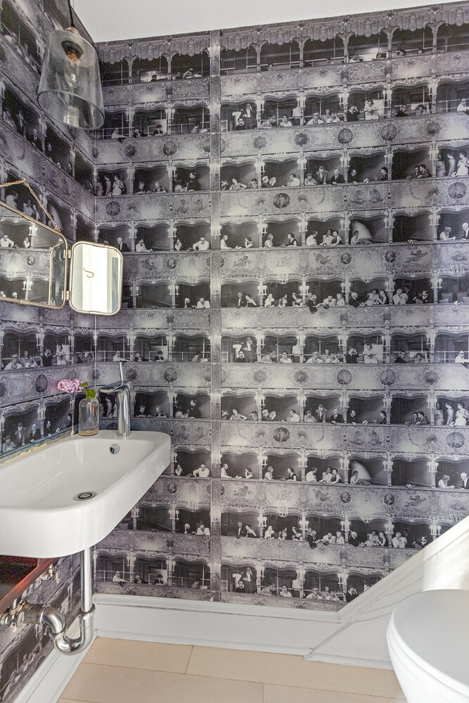 Inside, the home stuns with nearly 10-foot ceilings, original parquet floors, and intricate moldings throughout. The grand living room is anchored by a beautifully preserved fireplace framed in hand-glazed tile. Natural light pours through eight windows, accentuating the crisp architectural lines and historic textures. The dramatic turret dining alcove, wrapped in floral wallpaper and curved bay windows, offers an unforgettable setting for morning coffee or evening meals.