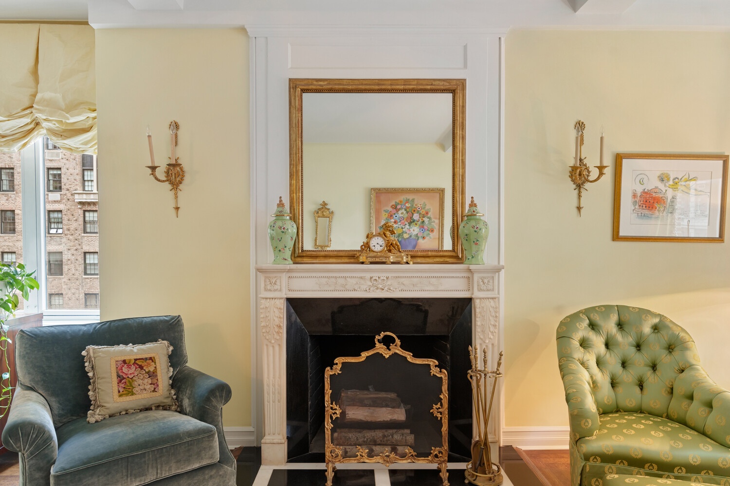 An oversized central gallery- a Roth signature-leads to a dramatic and bright corner living room with a wood-burning fireplace with a gorgeous marble mantelpiece. The expansive windows frame stunning river views. The windowed kitchen features custom cabinetry, top-of-the-line appliances, and a charming breakfast area bathed in morning light.