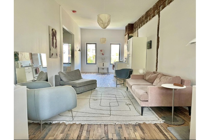A rare Brooklyn industrial-chic loft. Meticulously renovated in 2024, this bright and airy third-floor unit pairs sleek upgrades with raw, textured details including exposed brick and semi-finished plaster walls, creating an unmistakably edgy draw.