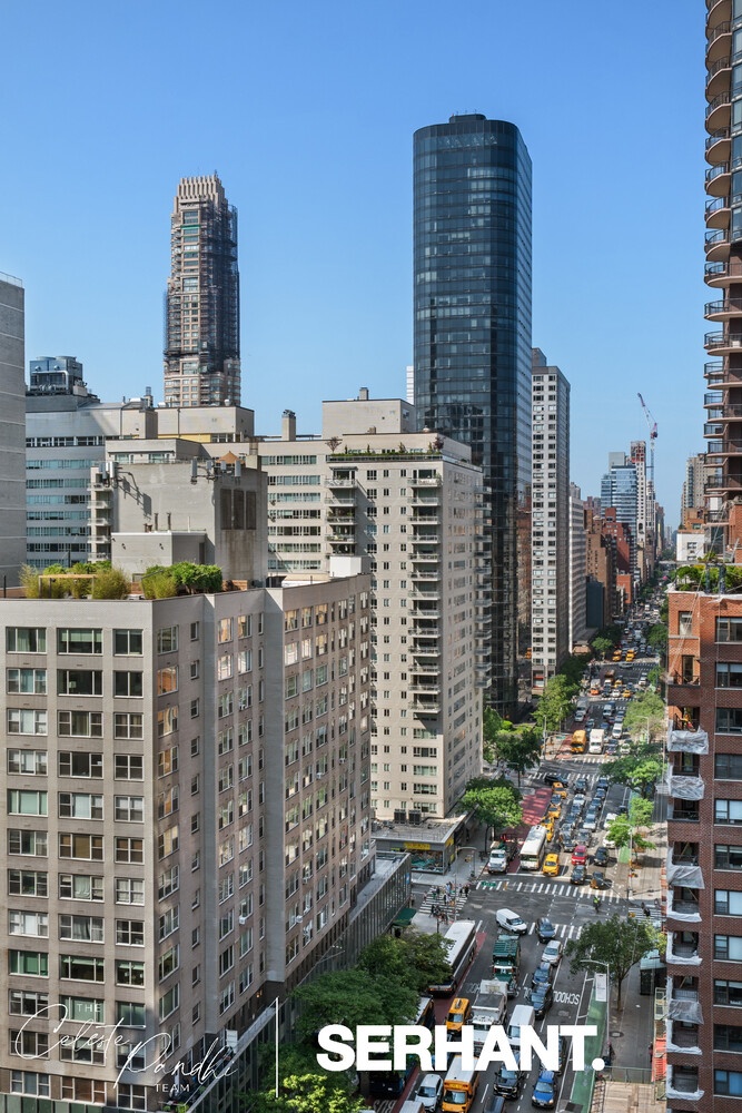 Welcome to 14J at 301 in Lenox Hill! New York Is Always A Good Idea with this 2 Bed /1 Bath apartment with hardwood floors, open kitchen and very spacious layout. The unit boasts 3 exposures - West (over 2nd Avenue), North and East. This is a very quiet location of the building in a prime spot in Lenox Hill plus tons of light! You will enjoy a windowed kitchen with built in microwave, stainless appliances, full fridge, dishwasher, wine fridge, granite countertop and tons of cabinet space. There are 2 walk in closets that are being newly outfitted! The bathroom is tiled with large medicine cabinet, under sink vanity and tub.