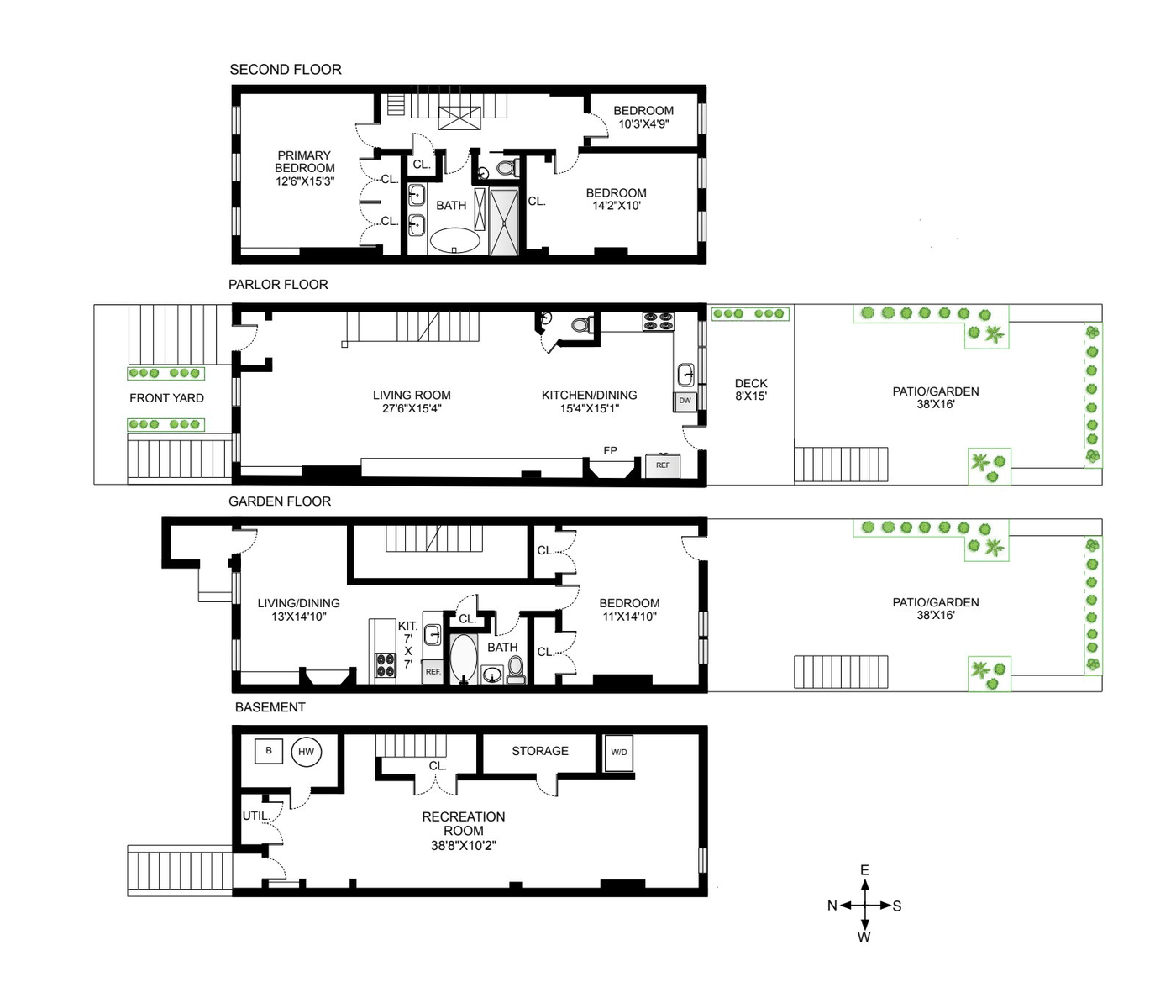 Gorgeous 3-story townhouse + finished basement. Currently set up as an owner’s upper duplex + renovated basement level – plus there is a lovely, updated 1BR floor through, garden-level rental.